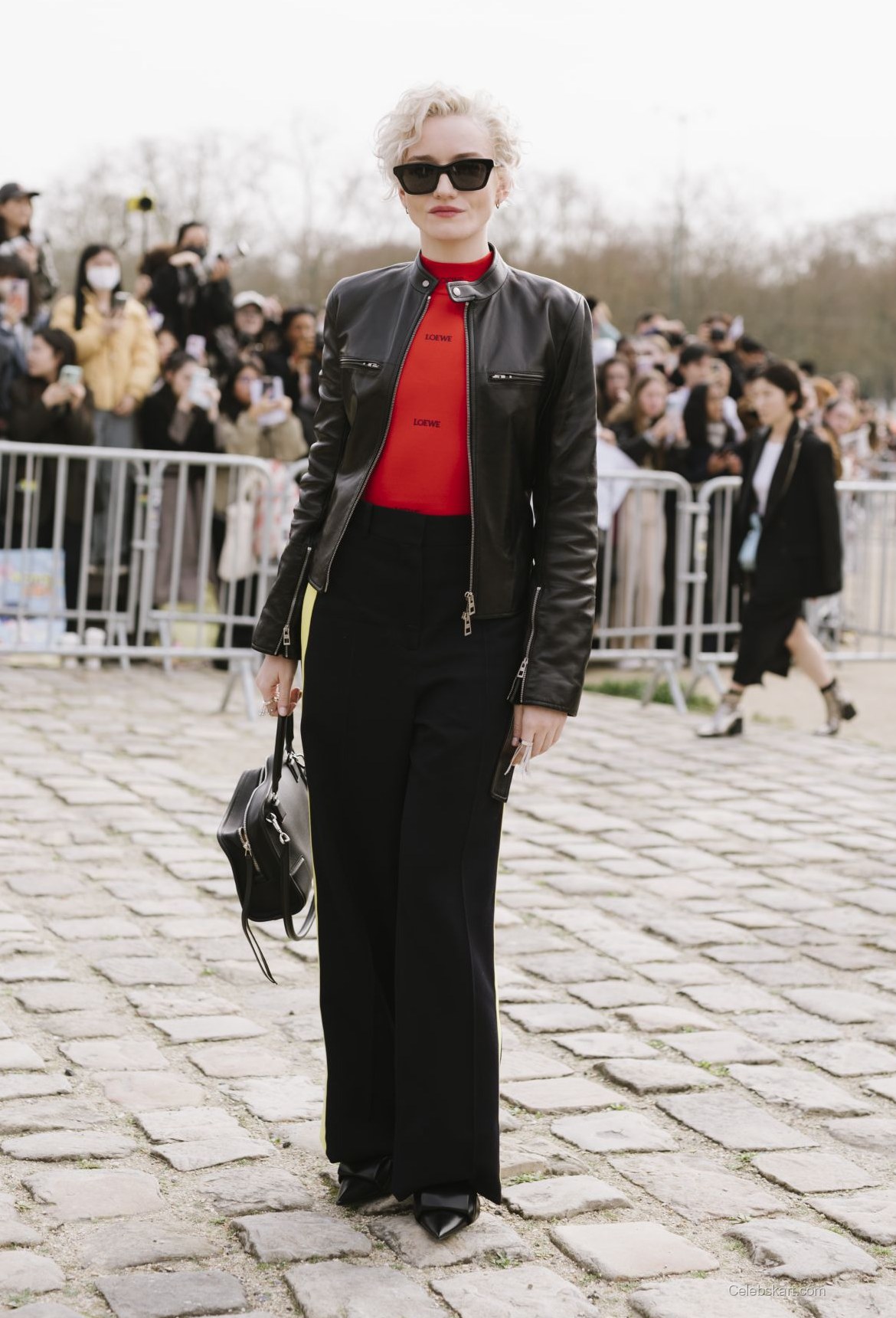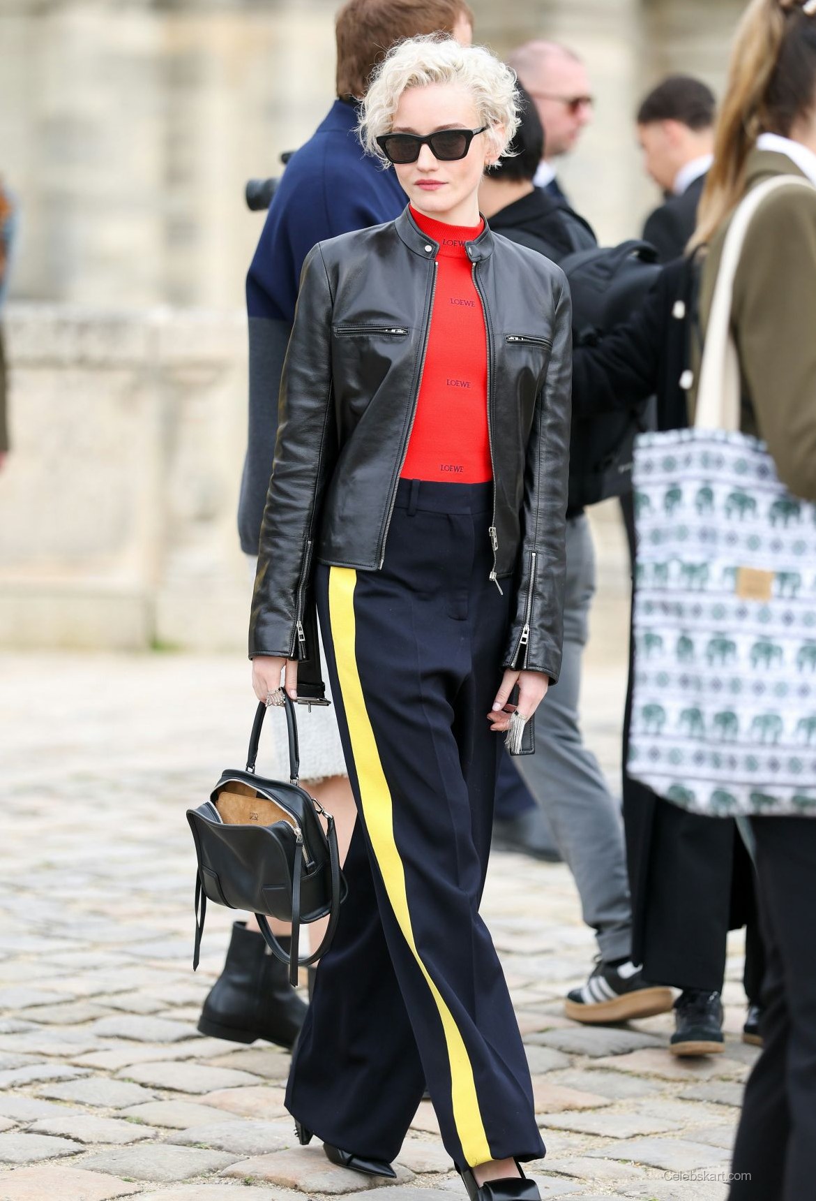 Garner's ensemble was a brilliant blend of textures and colors, which made it particularly noteworthy. The juxtaposition of the sleek pants against the sporty top strikes a modern chord, emphasizing her versatility as a style icon. The choice of accessories, including simple earrings and a chic handbag, rounded out her outfit effectively, giving it a polished finish that resonated well with the fashionable atmosphere of the event. Fans can check out more of Julia Garner's spectacular looks here, or explore the highlights from the Loewe event here.