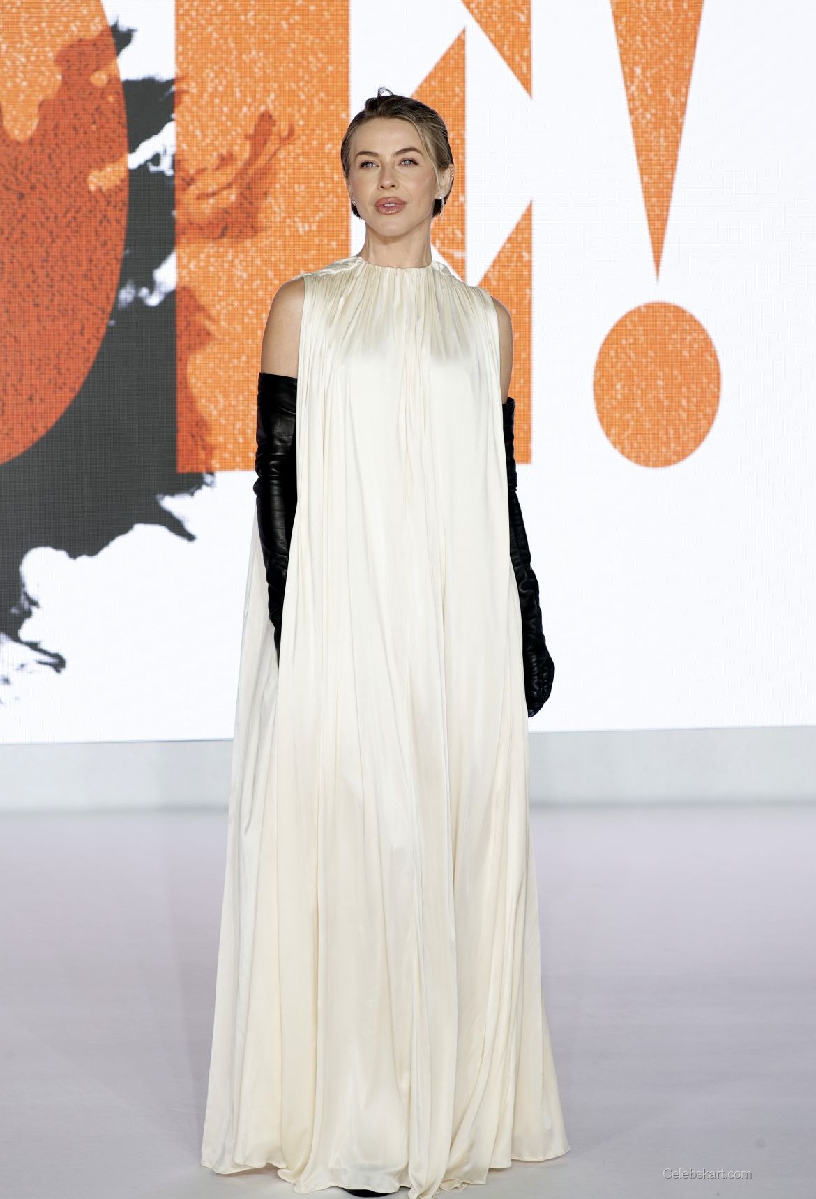 Her beauty styling complemented the look perfectly. With softly glowing makeup and elegantly styled hair, Julianne maintained the kind of effortless sophistication that has become her signature at high-profile events. The overall presentation aligned well with the mood of the The Bride UK premiere red carpet.