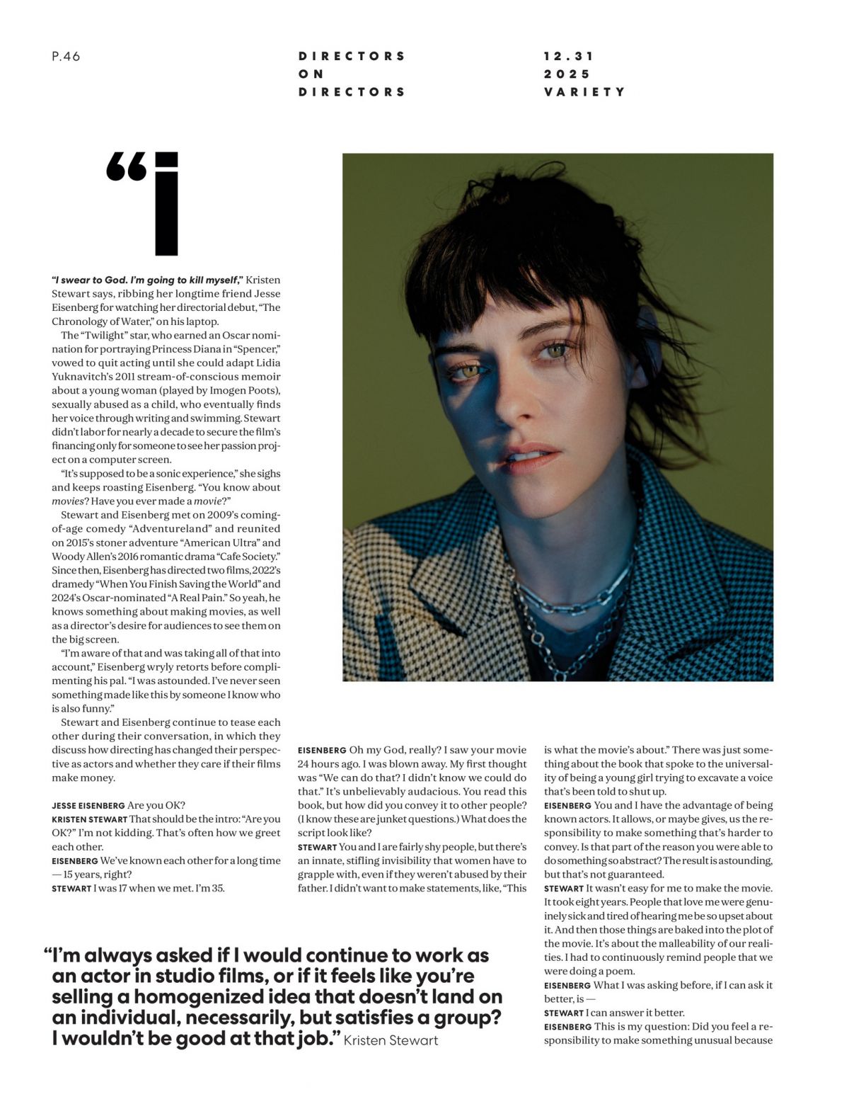 Kristen Stewart and Jesse Eisenberg Variety, Dec 2025
