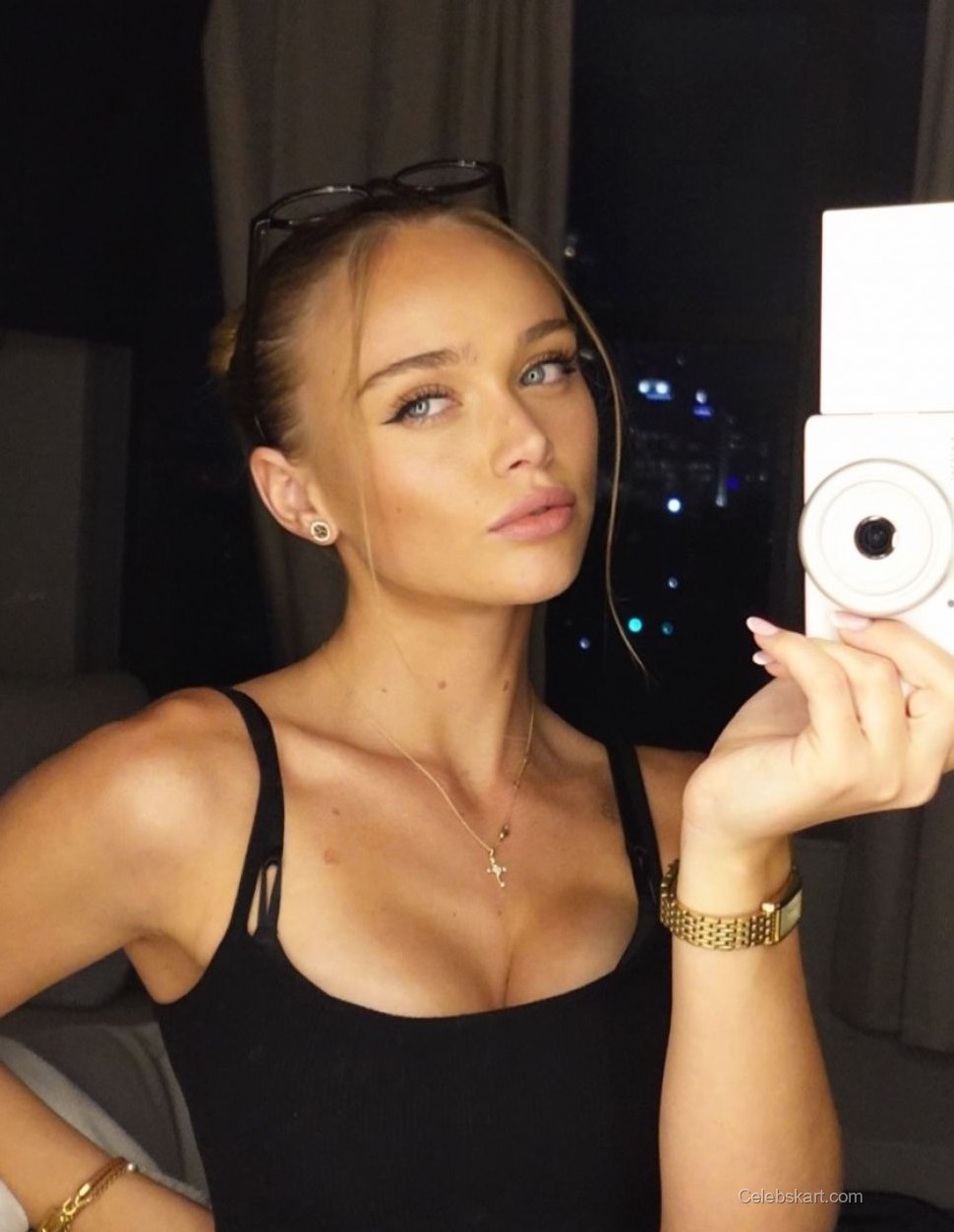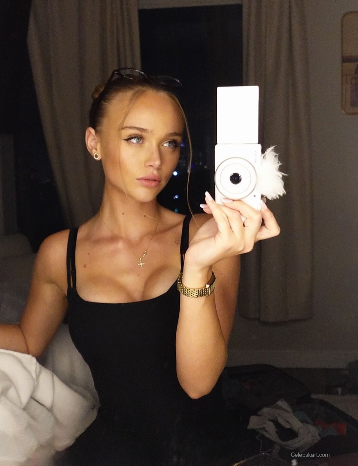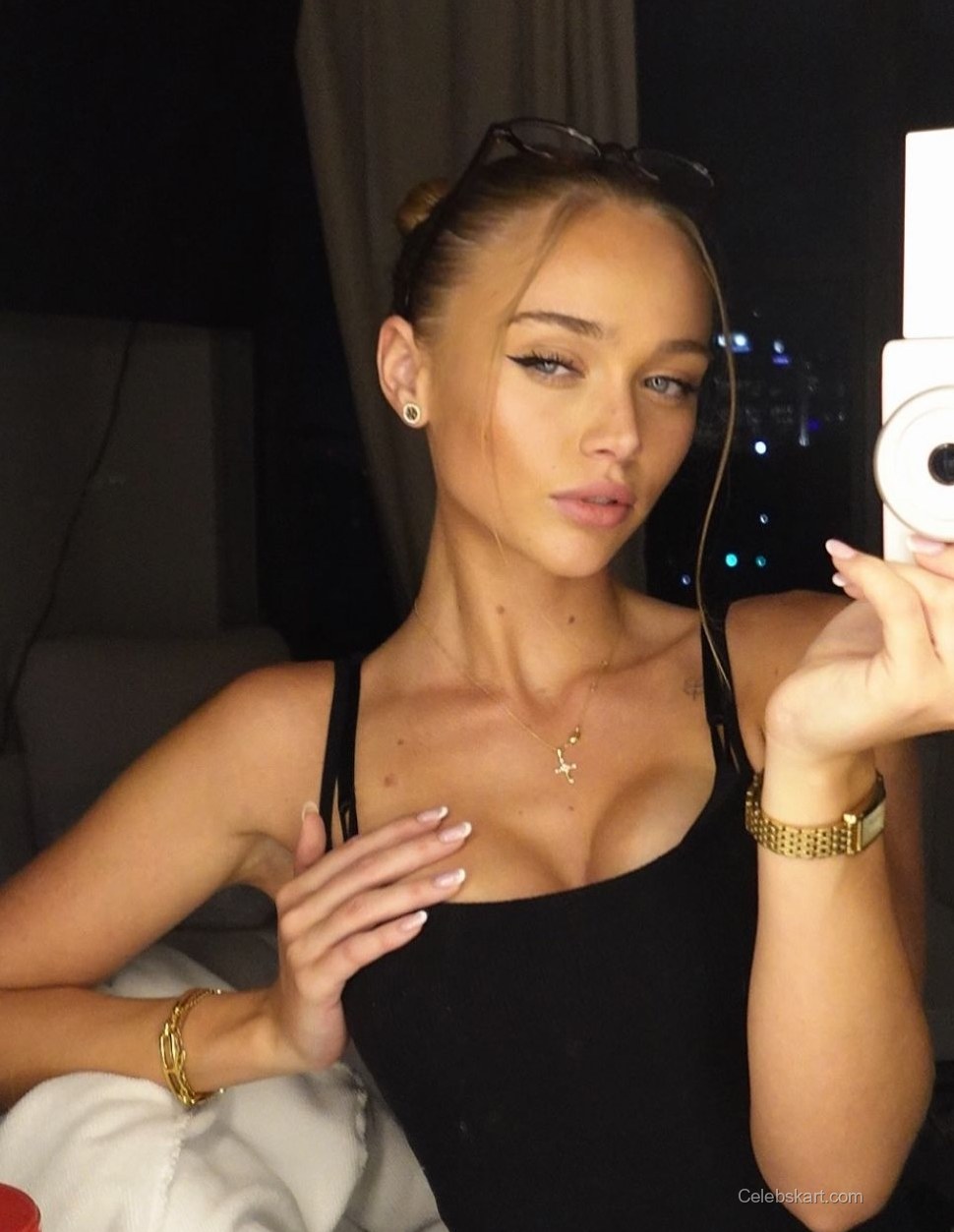 Her accessories complement her outfit perfectly. The gold jewelry includes small earrings that catch the light smoothly. The choice of her fitted black top creates a classic yet trendy vibe. Each element enhances her overall look without overshadowing it. Kyla's decision to keep her makeup minimal adds to the freshness of her Instagram appearance. Her choice of clothing and accessories showcases a modern aesthetic that appeals to her followers.