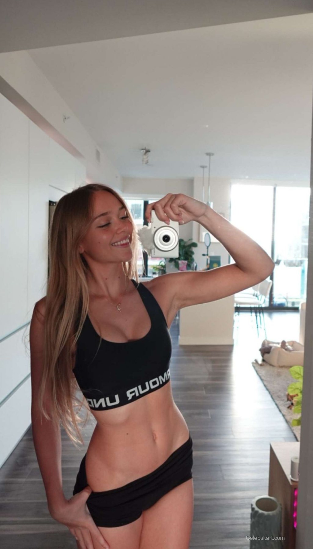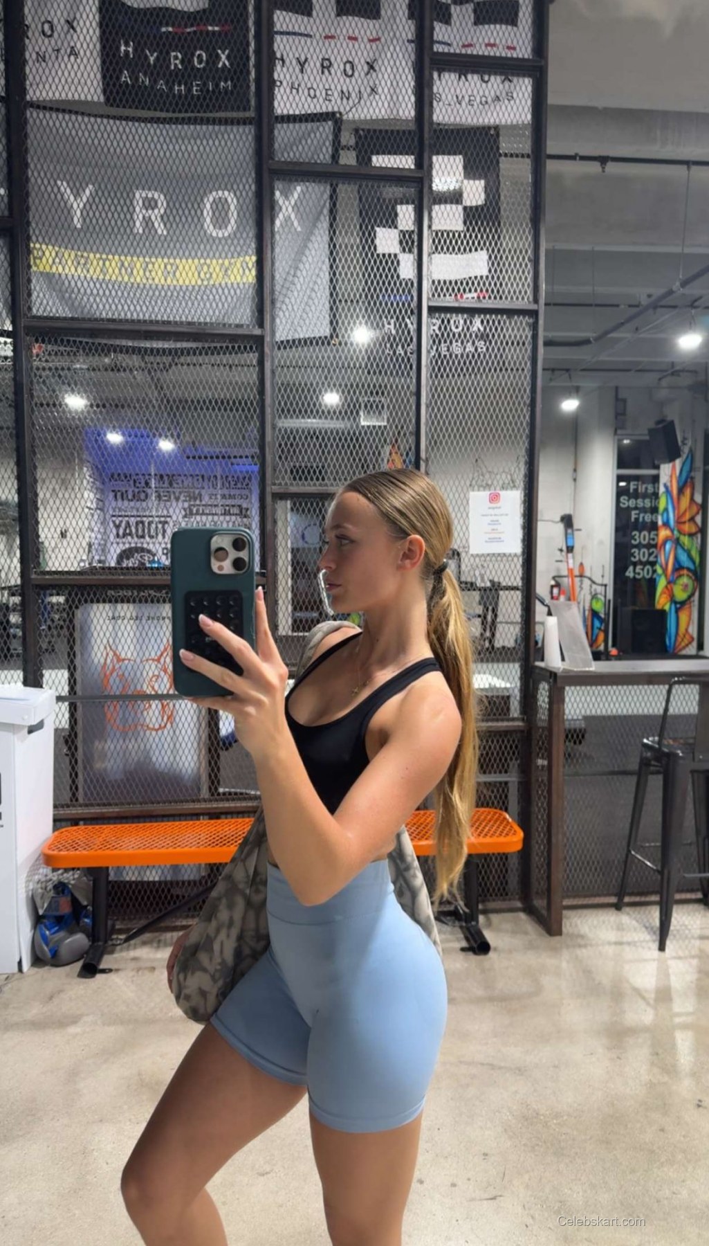 What makes this black outfit by Kyla Dodds stand out is its perfect blend of comfort and style. The fitted tank top and shorts highlight her athletic build while allowing for unrestricted movement. It’s a timeless choice for casual wear, demonstrating how one can look fashionable without excessive effort. This casual black tank look sets a trend for those looking to keep it simple yet chic.