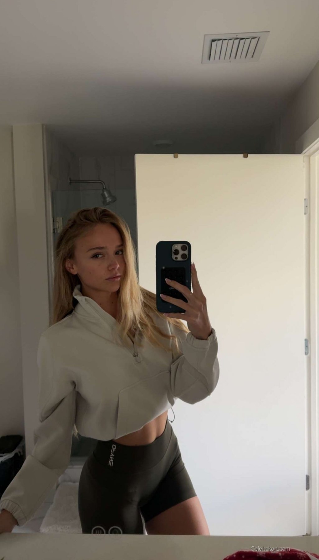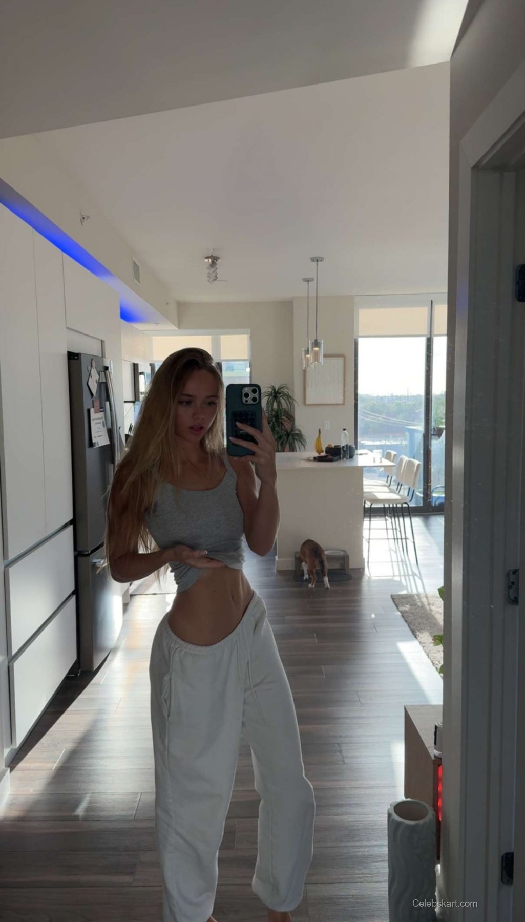 In her latest posts, Kyla donned a gray fitted top that beautifully accentuates her figure. Paired with loose-fitting white sweatpants, this outfit strikes an ideal balance between laid-back and chic. The soft color palette adds to the aesthetic appeal, allowing her personality to shine through. This look is not only versatile but is perfect for any casual outing.