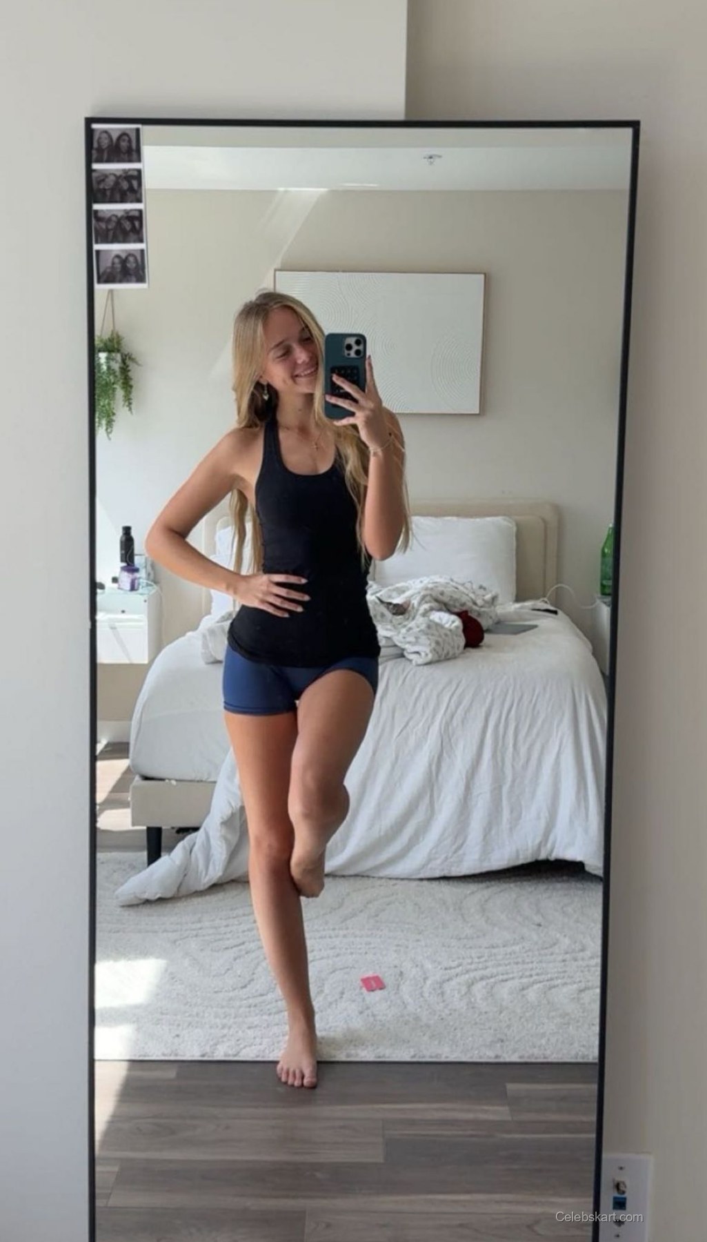 In her photos, Kyla strikes confident poses that reflect her personality. Standing in front of a large mirror, she smiles naturally while showcasing her outfit. In one moment, she is playfully resting her hands on her hips, emphasizing her easygoing and approachable style. Additionally, with soft light streaming in from the nearby window, the room's atmosphere adds warmth, enhancing the overall impact of her look. You can view more of her appearances in different outfits by visiting this Kyla Dodds fashion highlight.