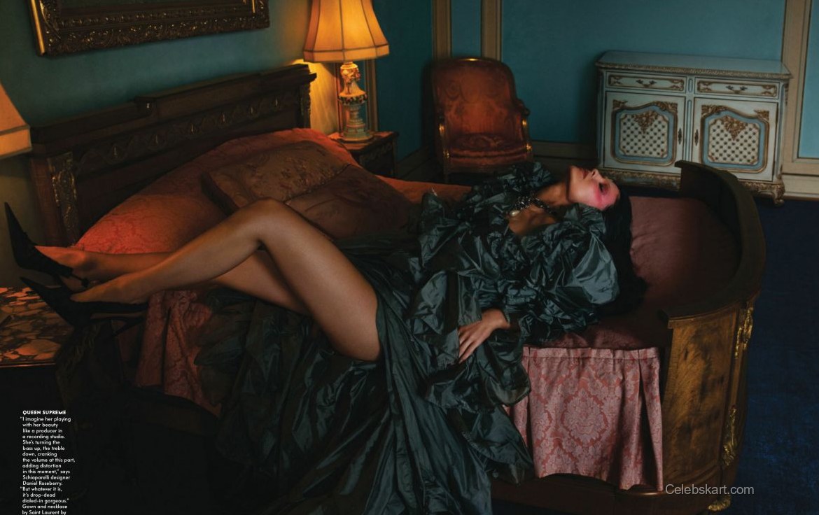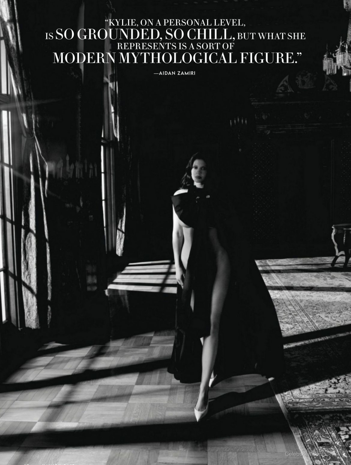 In this captivating cover shoot, Kylie poses with an air of confidence, holding a small item while showcasing her well-styled hair cascading over her shoulders. The soft hues of the background highlight her features, accentuating the outfit's boldness while allowing her personality to shine through. Notably, the setting, with its elegant furnishings, complements her style perfectly.