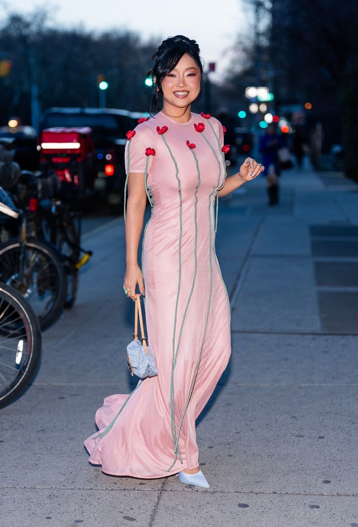 Lana Condor made a vibrant statement at the Pretty Lethal screening held in New York City this March 2023. Her choice of outfit drew attention, showcasing her unique style that perfectly balances playfulness and elegance. As she walked through the bustling streets, all eyes were on her floral details that adorned an eye-catching pink gown, truly making her the center of attraction.