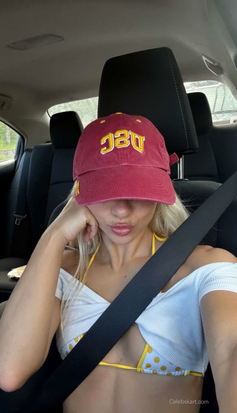 In one captivating shot, Leila is sporting a yellow polka-dotted bikini, paired with a casual red hat. The bright colors harmonize well, emphasizing the summer vibe she embodies. Her bikini features distinctive yellow accents, a playful combination that draws attention while remaining chic. As she poses, her confident stance highlights her well-toned figure, a testament to her dedication to fitness and style.