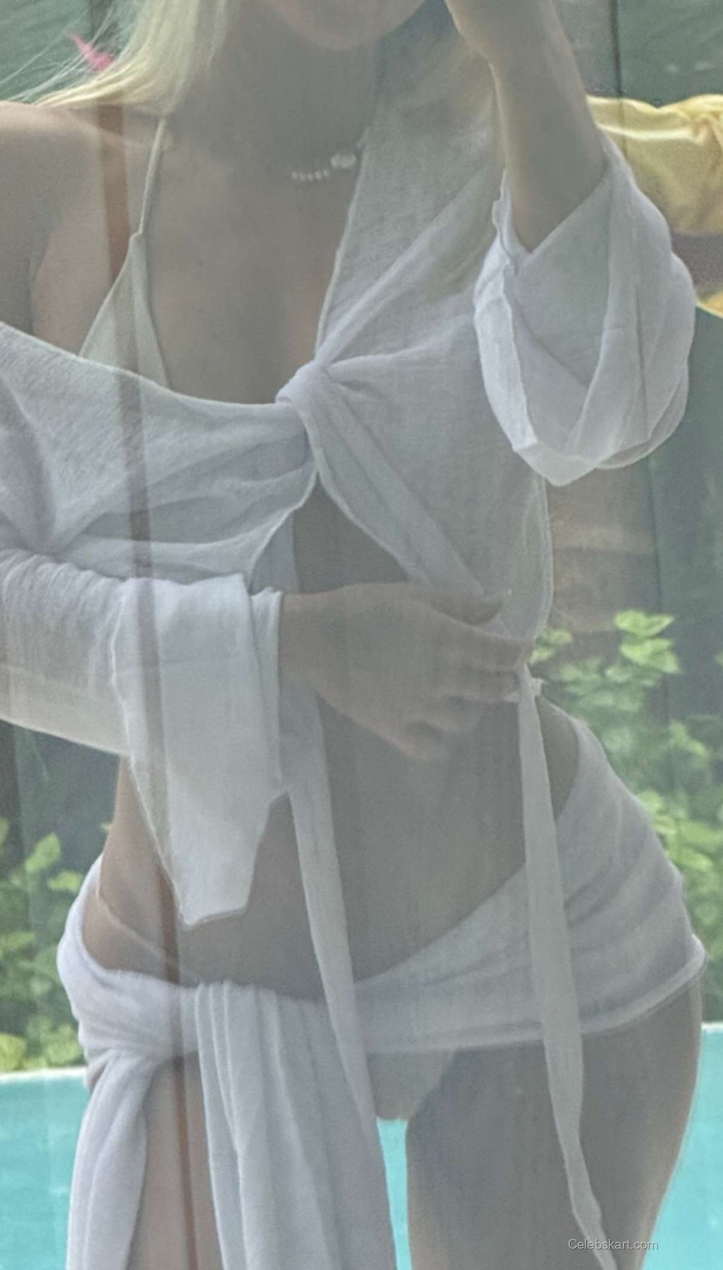 In her latest shots, Leila appears engaged in playful moments; she elegantly tosses her hair while holding a delicate piece of jewelry. With the lush greenery in the background, she radiates a relaxed energy, perfectly complementing the light and airy nature of her outfit. Furthermore, the soft, neutral color palette of her attire enhances her natural beauty. The balance of her outfit highlights her radiant skin, leaving a lasting impression.