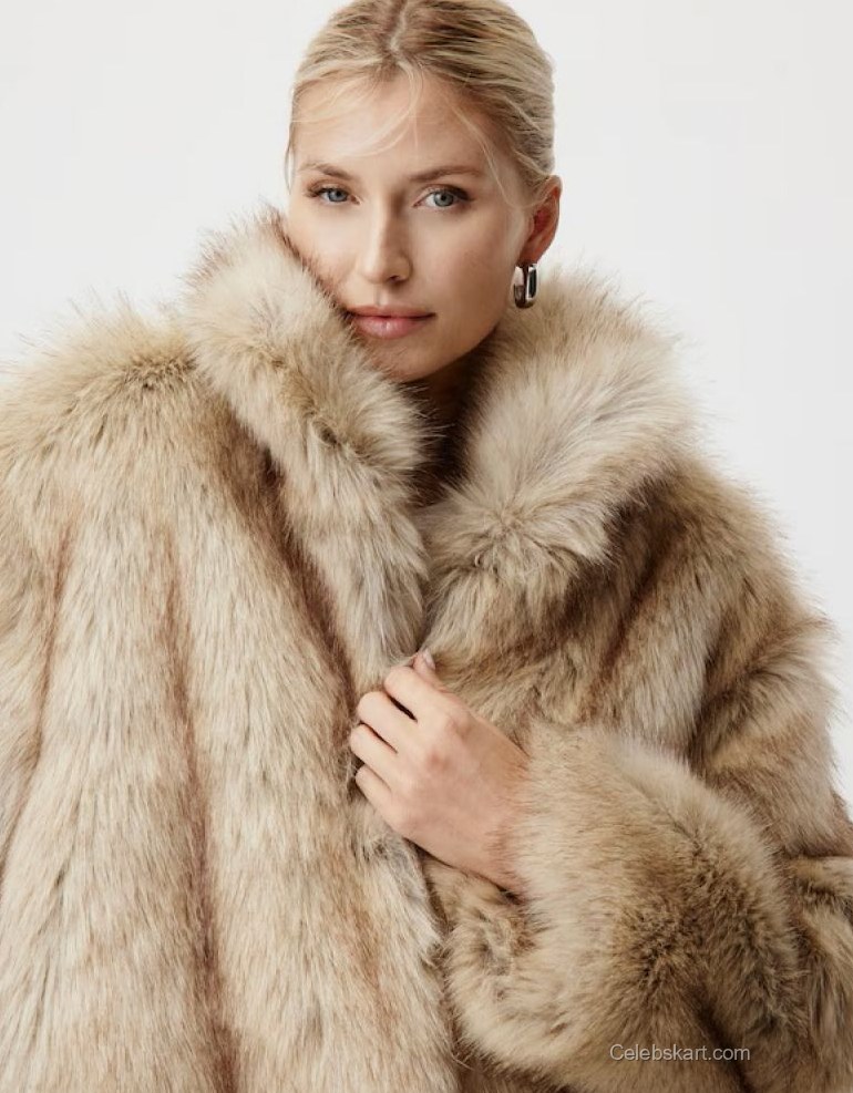 In one moment, Lena poses gracefully against a backdrop of wooden panels, showcasing the textures of her outfit. She holds her arms across her stomach, highlighting the elegance of her silhouette. The lighting perfectly accentuates her features, enhancing her natural beauty. Another captivating image shows her in a candid moment, looking thoughtfully off to the side, emphasizing a relaxed yet poised demeanor.