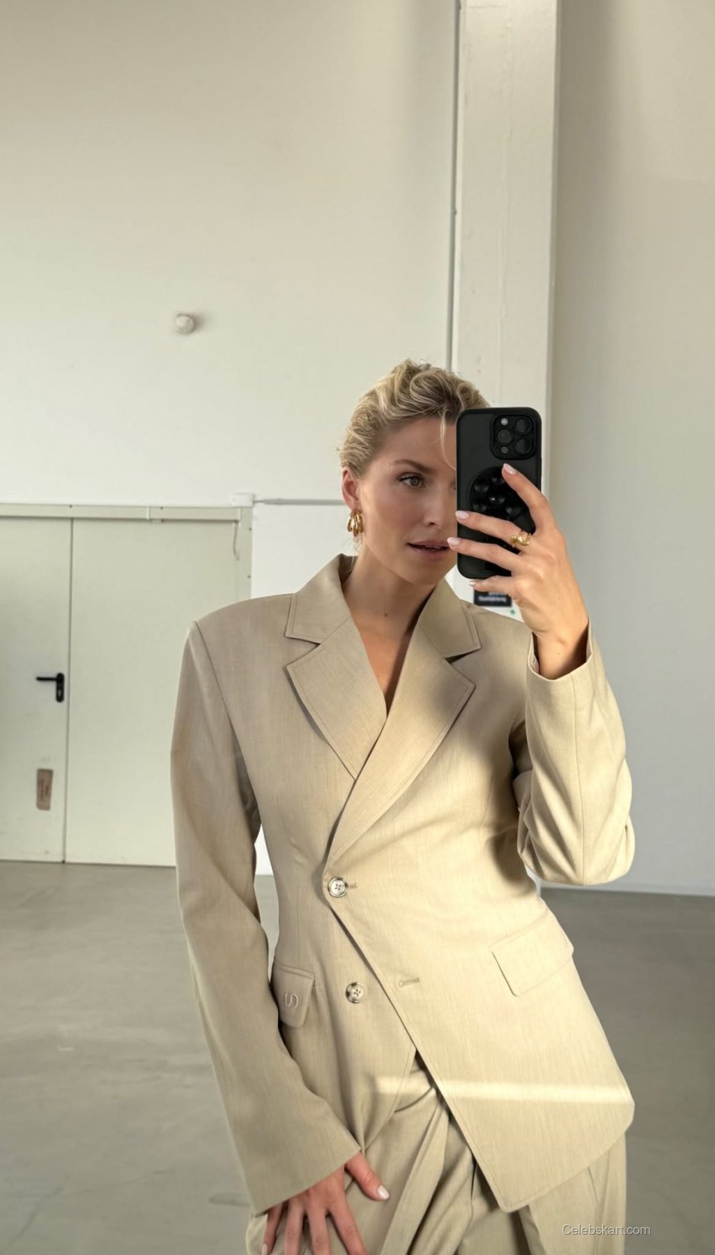 The choice of color is particularly striking, as the warm brown tones serve not only to flatter her complexion but also evoke a sense of comfort and tranquility. This outfit is an excellent representation of seasonal fashion, ideal for both casual outings and more structured events. Her sweater can easily transition from day to night, offering versatility that's perfect for the modern woman. It’s no wonder that fans are clamoring for more of Lena's fashion choices. You can see more of Lena Gercke's outfit inspirations here.