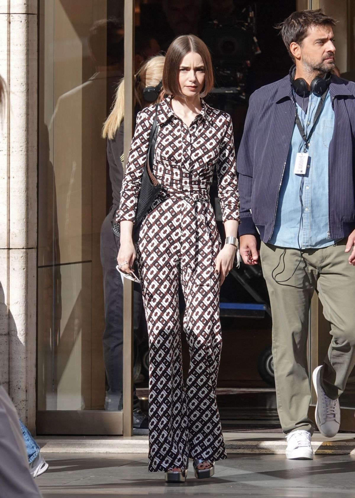 Home Global Celebrities Lily Collins Lily Collins Filming for Emily in Paris in Rome, May 2025