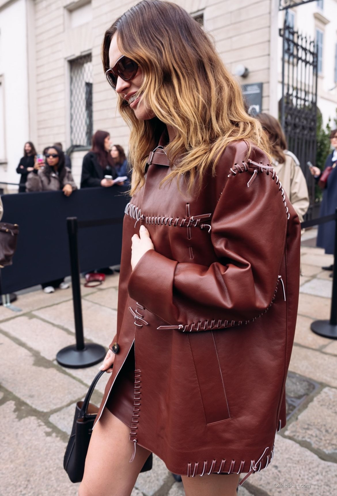 For the highly anticipated presentation, she wore a refined Tod’s ensemble that emphasized premium craftsmanship and clean tailoring. The look featured neutral tones and structured elements that aligned seamlessly with the Tod’s Fall Winter 2026 womenswear collection.