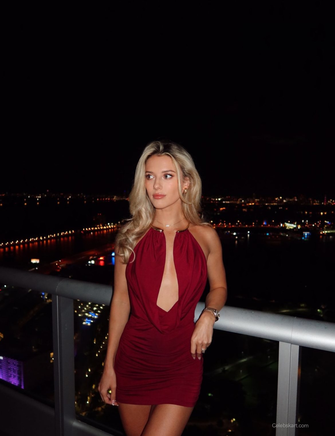 At the NASCAR event, Lindsay was dressed in a bold burgundy dress that featured a striking neckline. The design hugged her figure beautifully, enhancing her silhouette while exuding confidence. The rich color complemented her blonde locks, drawing attention to her radiant smile. To find similar styles, check out Lindsay Brewer's outfits here.