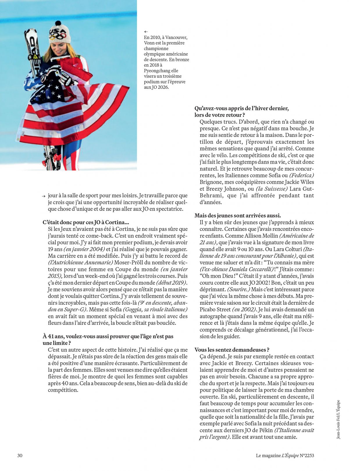 Lindsey Vonn in L’Equipe Magazine France, 2025
