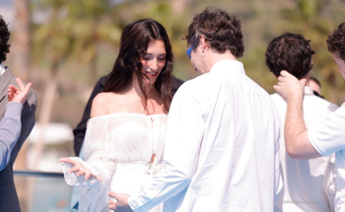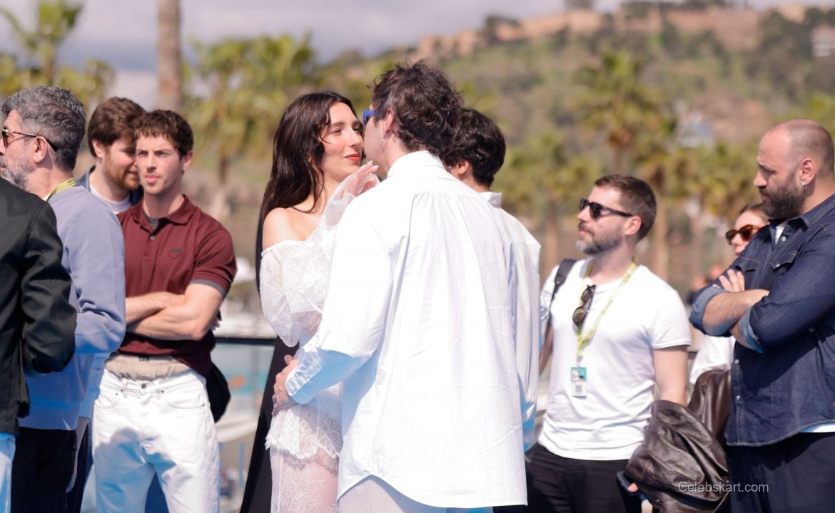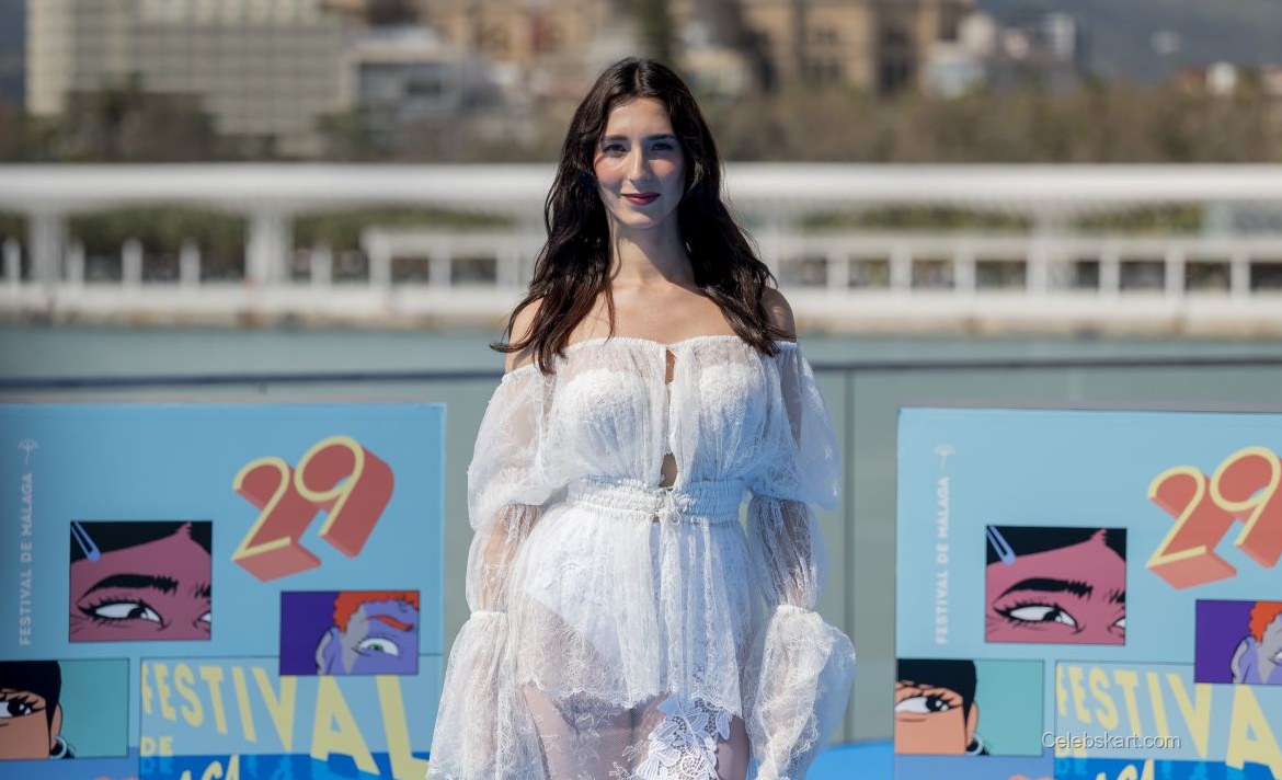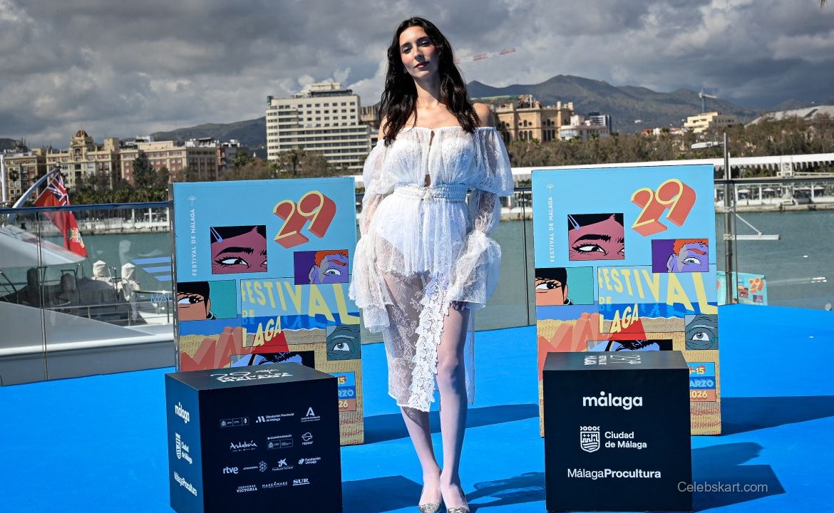 The actress opted for a striking all-white ensemble adorned with delicate lace and sheer fabrics. This design played beautifully against the backdrop of sunny Malaga, enhancing the overall effect. The eye-catching white lace dress included a cinched waist, which added a flattering silhouette, while the layered textures provided a multidimensional look. Her choice of pointed silver heels further complemented the outfit, making her appear taller and more poised against the bright blue background of the festival area.