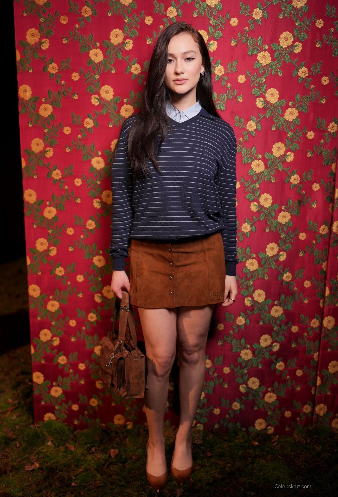 Lola Tung’s presence at the Miu Miu Fashion Show truly showcased her emerging talent not only in acting but also in fashion. Her choice to don a striped top with a textured suede skirt illustrated a refreshing take on classic styles. It’s exciting to predict how her fashion journey will unfold in the future!