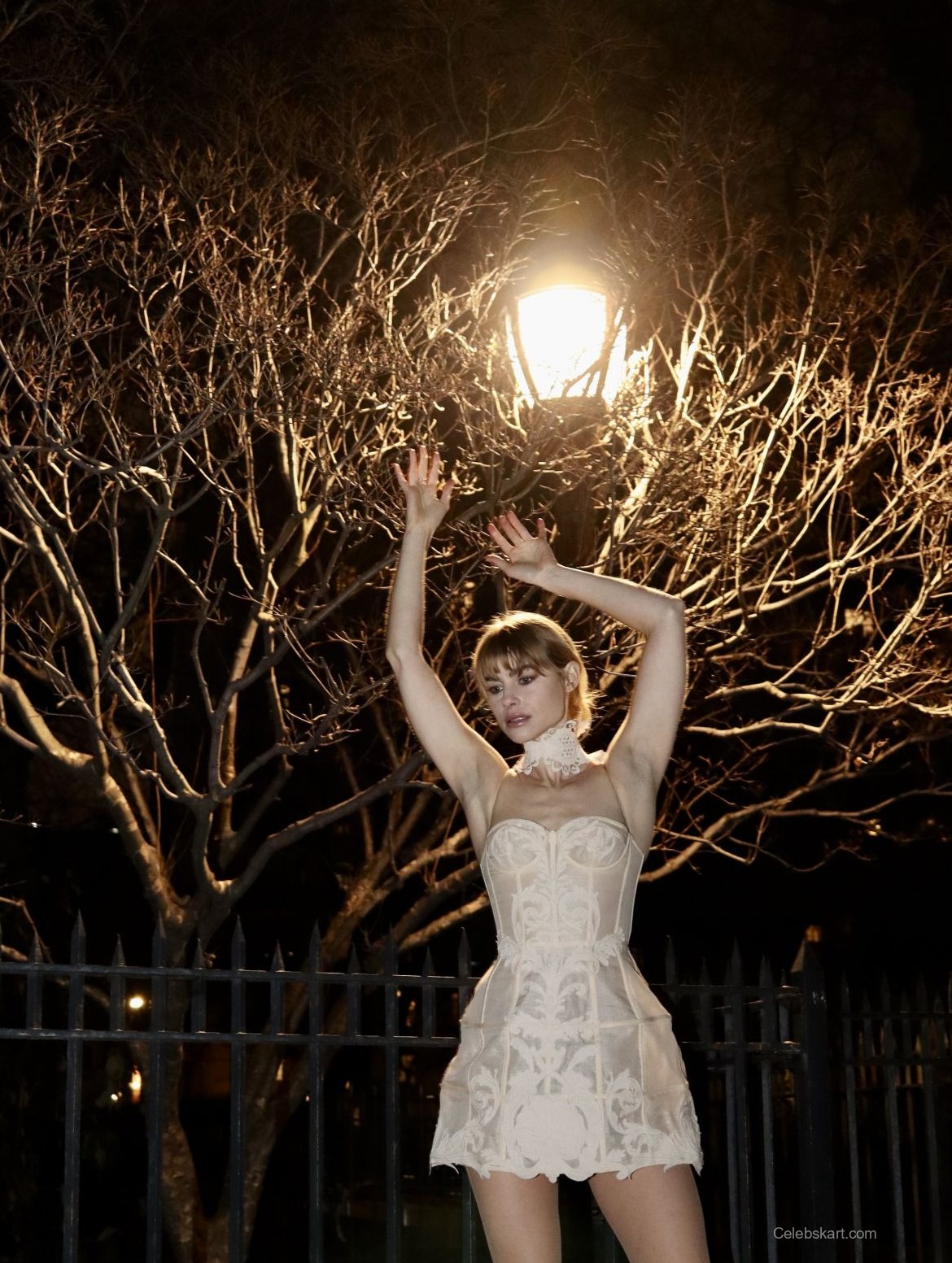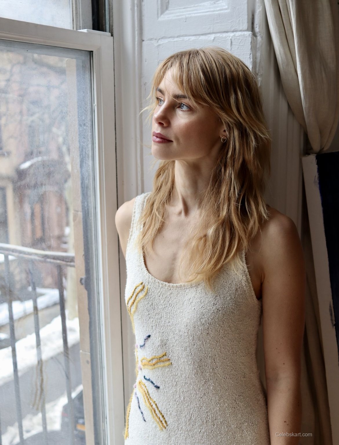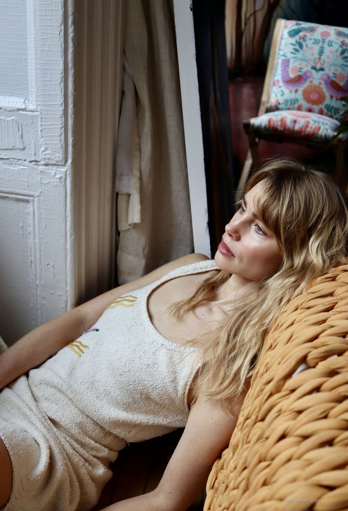 Lucy’s pose hints at confidence as she interacts with her surroundings, exuding a warm and inviting aura. As she gazes thoughtfully outside the window, her expression captures the essence of a reflective moment, further enhancing the aesthetic appeal of the image. Additionally, the soft lighting of the room accentuates her radiant complexion. The combination of her outfit and her playful demeanor makes this photoshoot irresistibly engaging. Experience the beauty of Lucy Fry captured in these moments; explore more images from this elegant photoshoot that truly showcases her charisma.