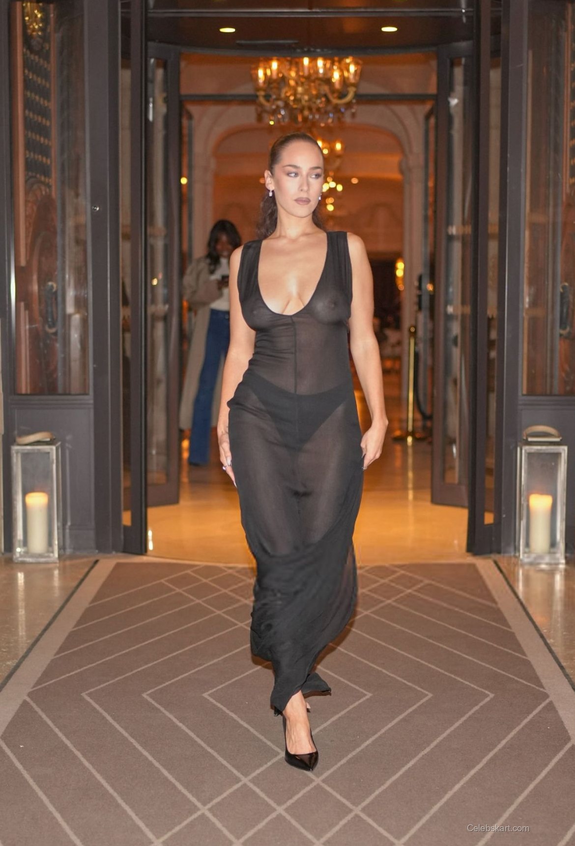 Wearing a stunning sheer black dress that hugged her figure, MAETA's choice highlighted her confident style. The gown featured a daring neckline and was crafted from a translucent fabric that elegantly flowed with her movements. Completing the look, she opted for pointed black heels, which added a touch of sophistication.