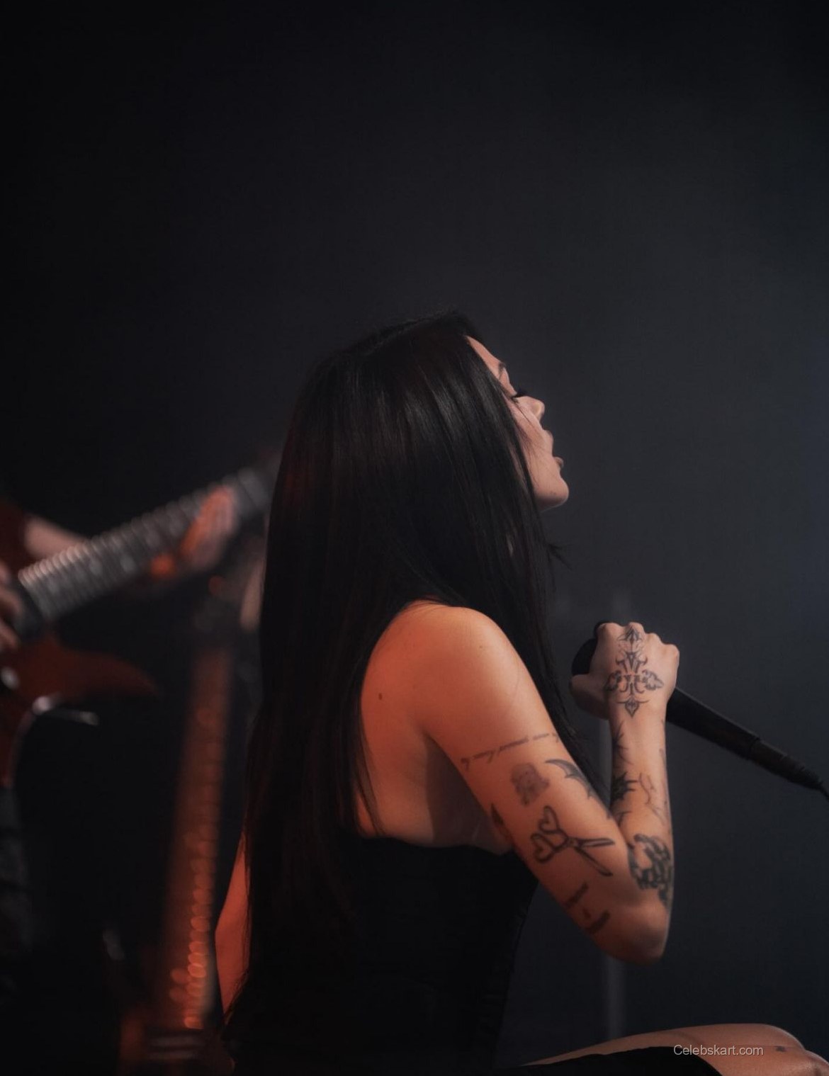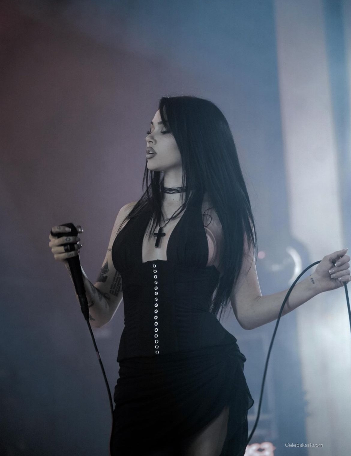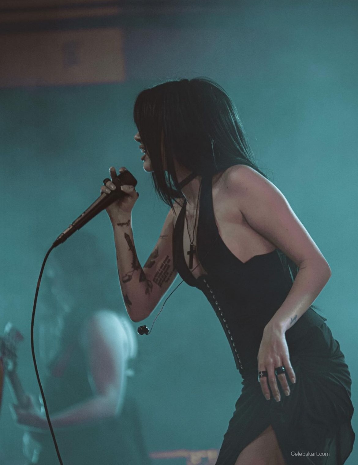 The outfit was captivating, featuring a deep neckline and a side slit that added a bold touch to her look. Maggie paired the dress with eye-catching accessories, including layered necklaces and bold rings, which completed her ensemble beautifully. The way she styled her hair—long and straight—further emphasized the edgy nature of her outfit.