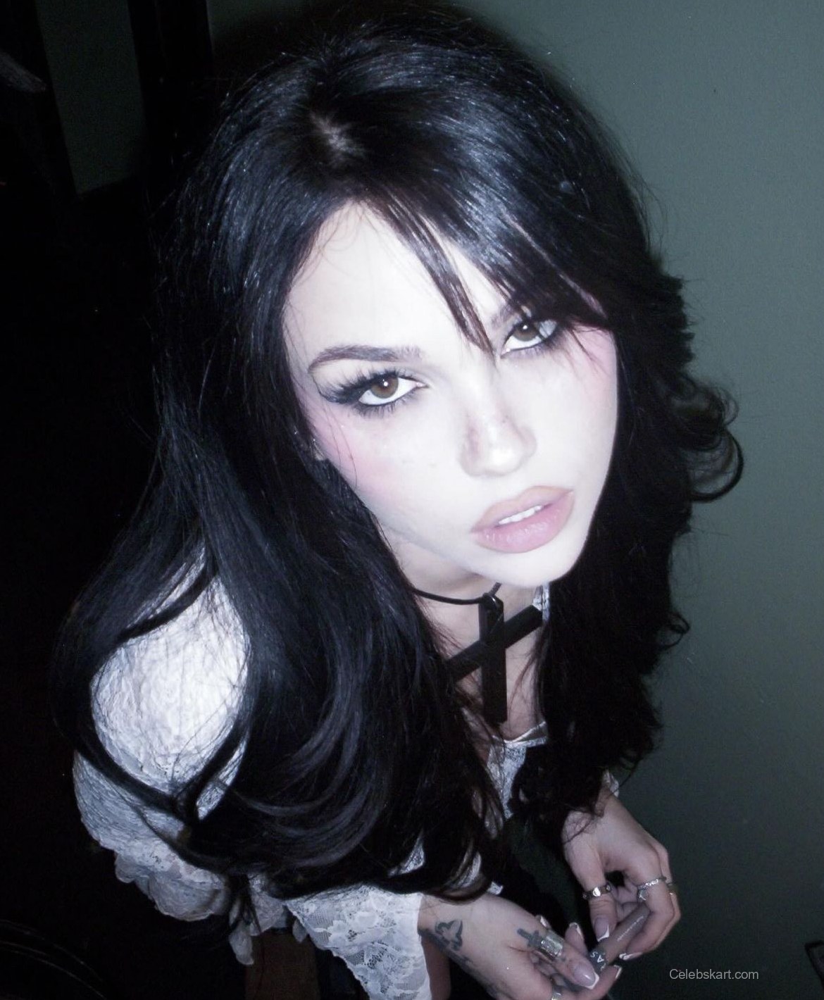In the first snapshot, Maggie leans slightly forward, her hair cascading effortlessly around her shoulders, giving an engaging view of her styled locks. The way her hair plays with the light creates an intriguing visual, drawing attention to her expressive makeup that enhances her features. Another moment finds her in a slightly side profile, seemingly unaware of the camera, exuding a sense of spontaneity and casual elegance. These dynamic moments offer a glimpse into Maggie's charisma and unique sense of style.