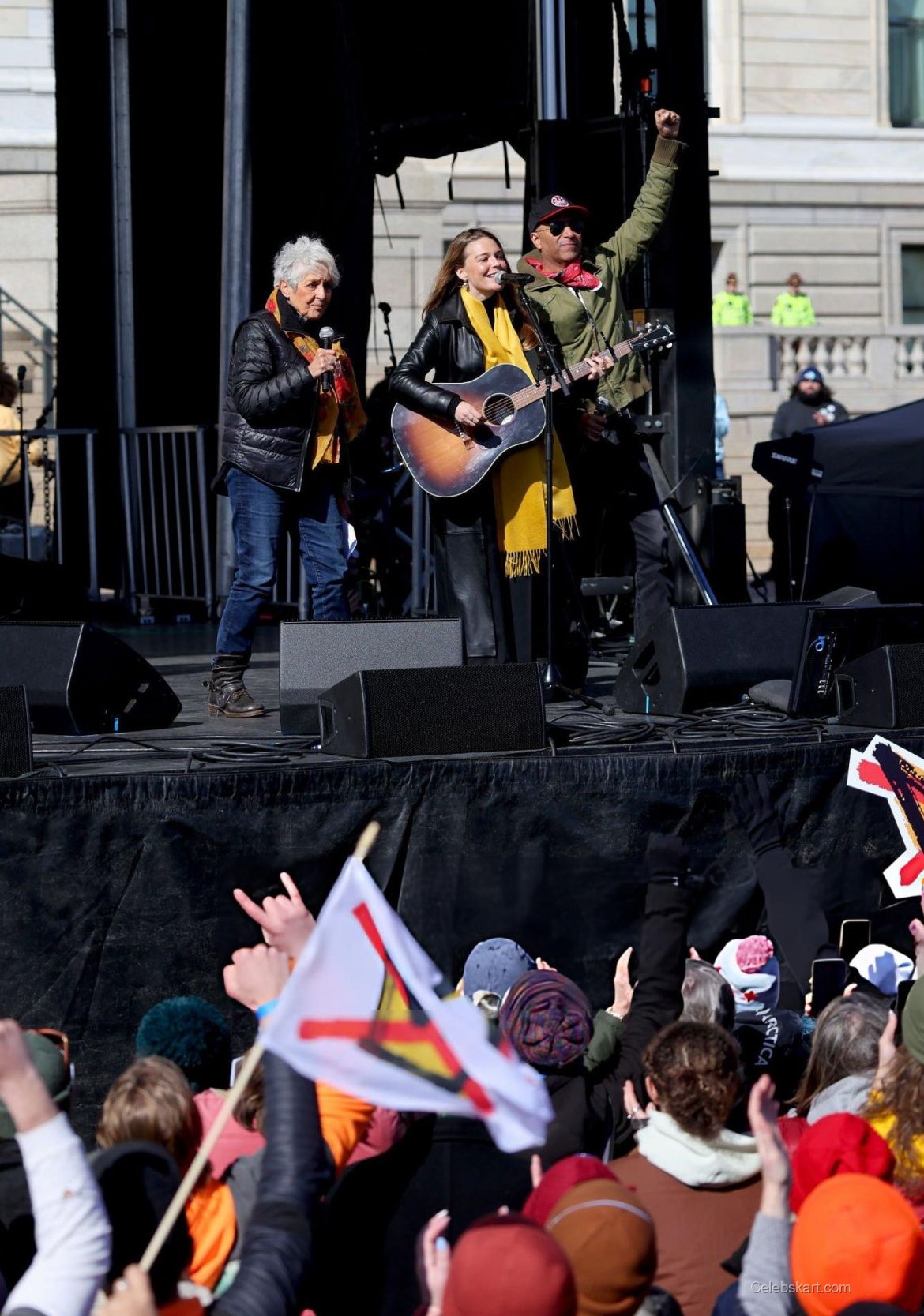 The No Kings Rally was a significant gathering, focusing on social justice and community empowerment. Maggie shared the stage with other influential voices, engaging the crowd with her music and messages of hope and resilience. She interacted warmly with fellow speakers, creating a sense of unity that matched the vibrant spirit of her performance. Many in the crowd could be seen captivated not only by the music but also by the message that Rogers and others conveyed.
