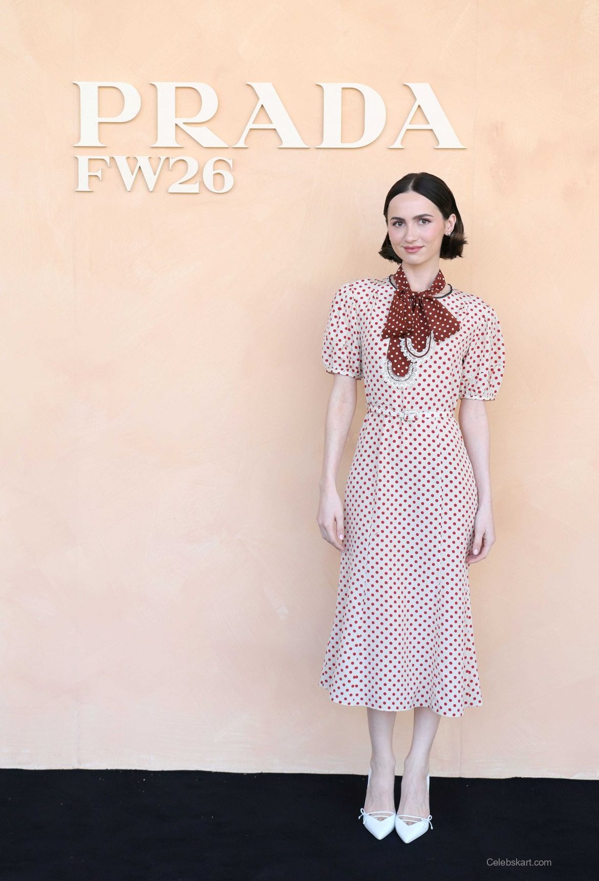 The Maude Apatow at Prada Show Milan February 2026 outing ultimately delivered modern minimal elegance with signature Prada refinement.