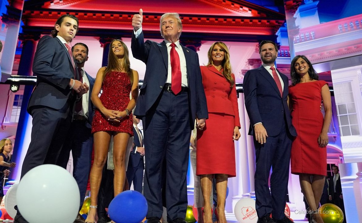 Melania's outfit was centered around a chic white suit, which featured tailored trousers and a matching blazer. The crisp white fabric radiated sophistication, forming a visually appealing contrast against the deep hues of the venue. Her blazer was perfectly fitted, accentuating her silhouette, while the trousers fell gracefully to her heels. A white blouse underneath completed the look, tied together by a delicate belt that added subtle detailing. The choice of oversized earrings also enhanced the sophisticated vibe of her entire ensemble.