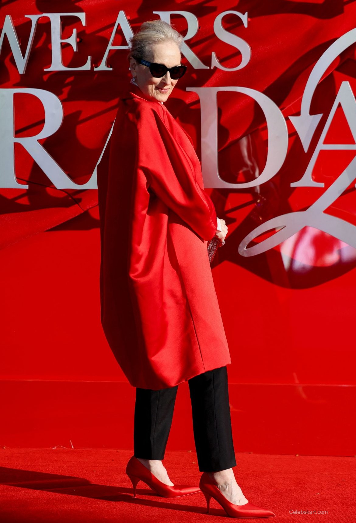 What makes Meryl Streep's outfit particularly noteworthy is her ability to balance contemporary fashion with classic elements. The red cape not only stands out but also pays homage to her iconic role in the original The Devil Wears Prada. The pairing of the silk shirt with tailored pants is a masterclass in modern styling, subtly reinforcing her status as a style icon.