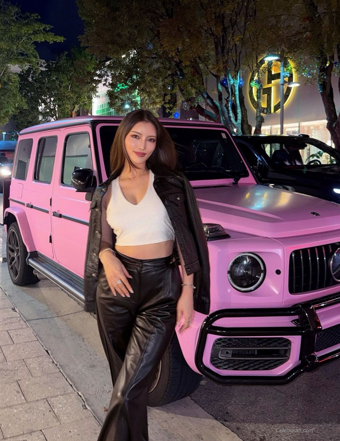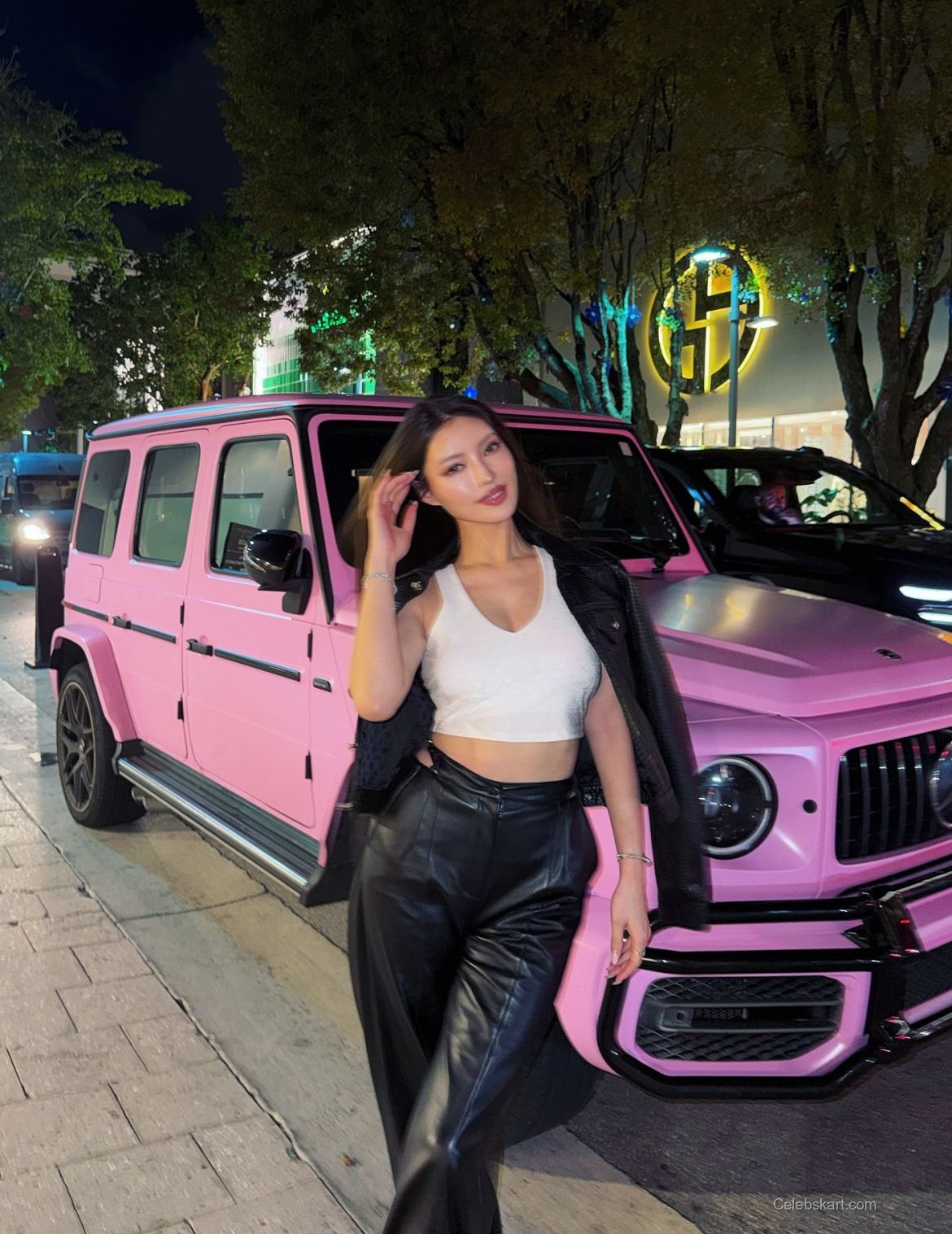 Mika Takeuchi – Chic Look With Pink Mercedes 2023