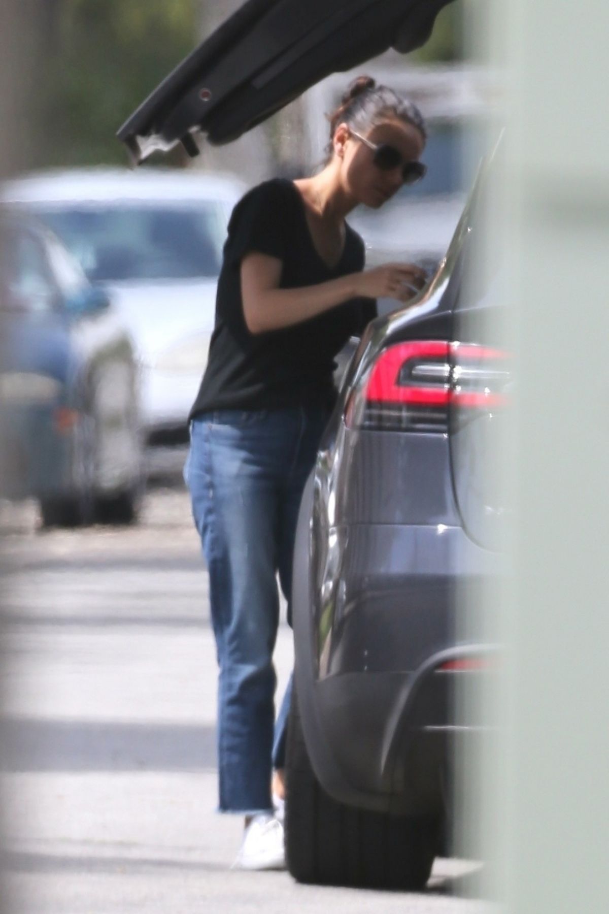 Mila Kunis Stills Returns to Her Tesla Model 3 Car in Los Angeles 2018/03/27