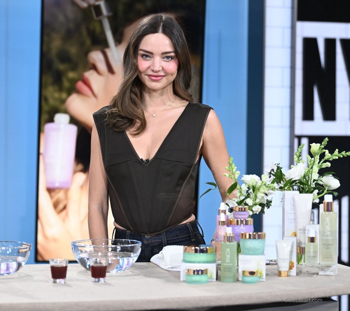 As she interacted with the hosts, Miranda's smile lit up the studio. She engaged with the audience, holding a skincare product and sharing insights. At one point, she gracefully adjusted her hair, instantly displaying her effortless style. The bright backdrop of the Good Day New York set complemented her outfit beautifully, creating a polished look.