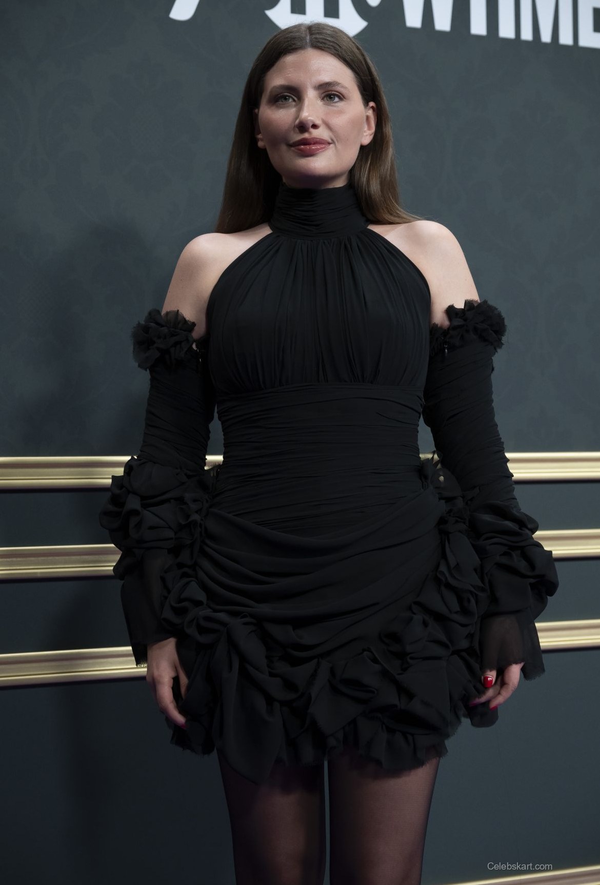 Miriam Giovanelli made a striking appearance at The Tribute Premiere held at Circulo de Bellas Artes in Madrid on April 21, 2026. The actress captivated the audience with her choice of attire, showcasing a fashionable black ruffled dress that perfectly complemented her elegant style.