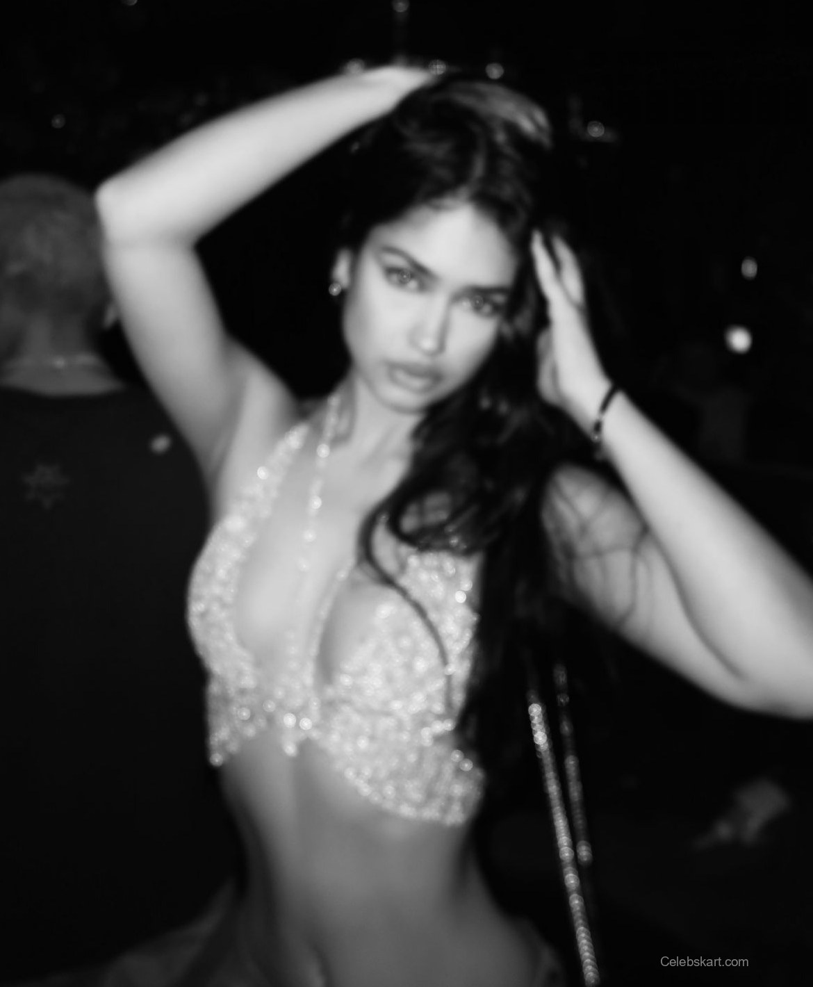 Naaz posed with confidence, running a hand through her hair, which framed her face beautifully. The backdrop, filled with soft lighting and dynamic colors, enhanced her presence, drawing attention to her vibrant outfit. At one point, she leaned slightly forward, giving a glimpse of her ensemble while exuding a charisma that captivated onlookers. It was evident that Naaz was at ease, smiling and engaging with her surroundings while making a fashion statement.