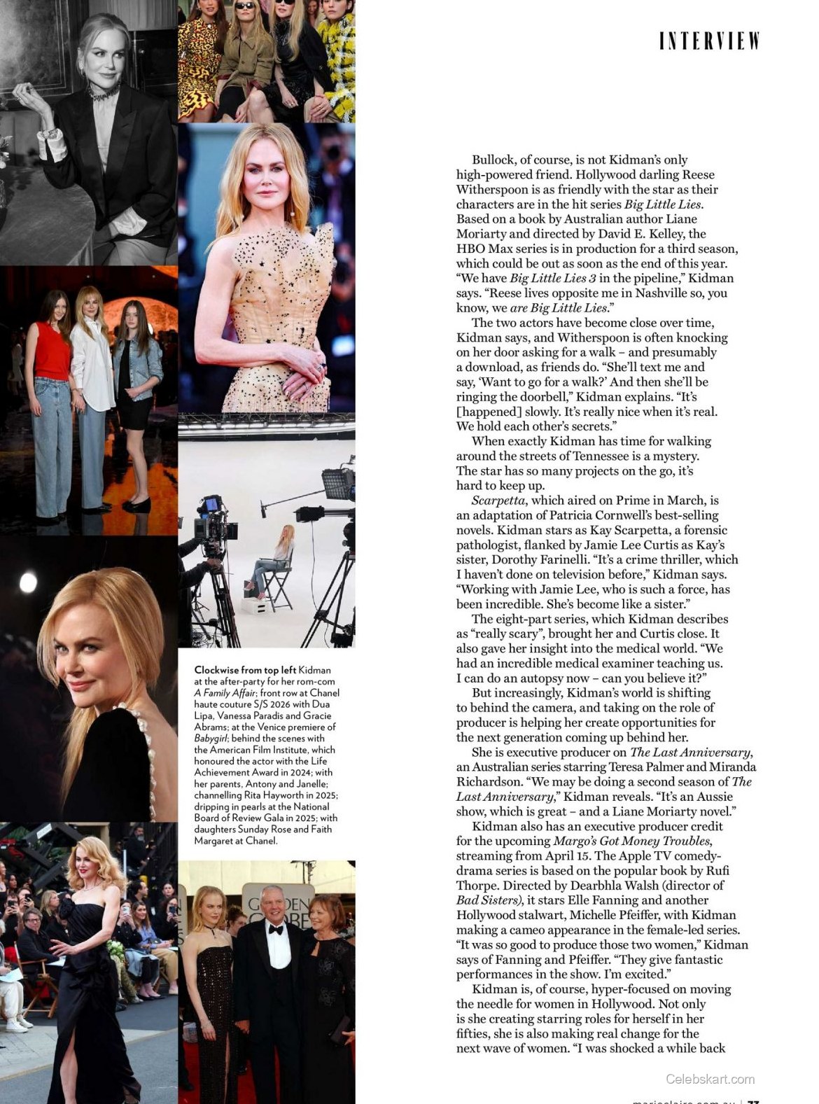 Nicole Kidman's appearance in Marie Claire Australia showcases her enduring status as a fashion and cultural icon. Her choice of a classic black outfit, combined with thoughtful styling, draws attention while embodying grace and power. Not only does she redefine fashion for herself, but she also inspires others to embrace their unique style. For more insights into Nicole Kidman's fashion, you can view additional photographs of her outfits in our gallery here: Nicole Kidman’s fashion moments. This graceful yet power-packed look serves as a reminder of her multifaceted talents and significance in entertainment.