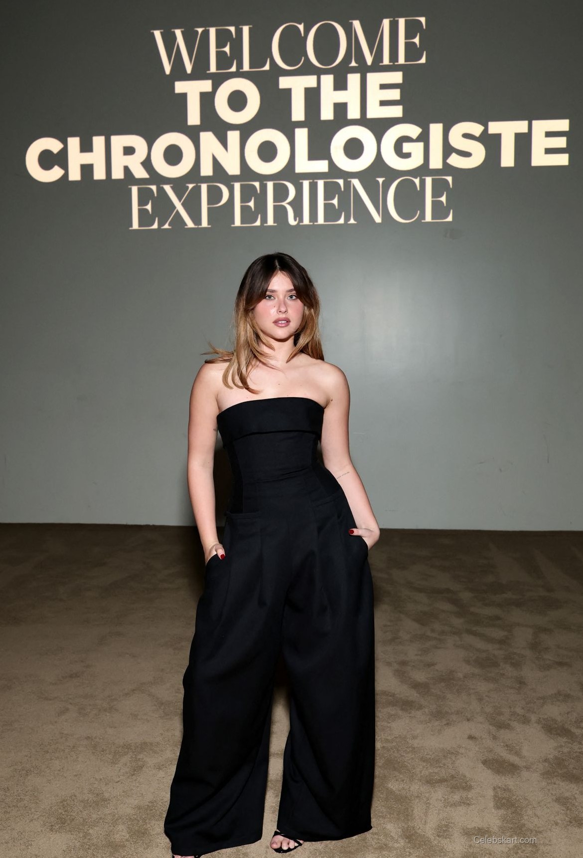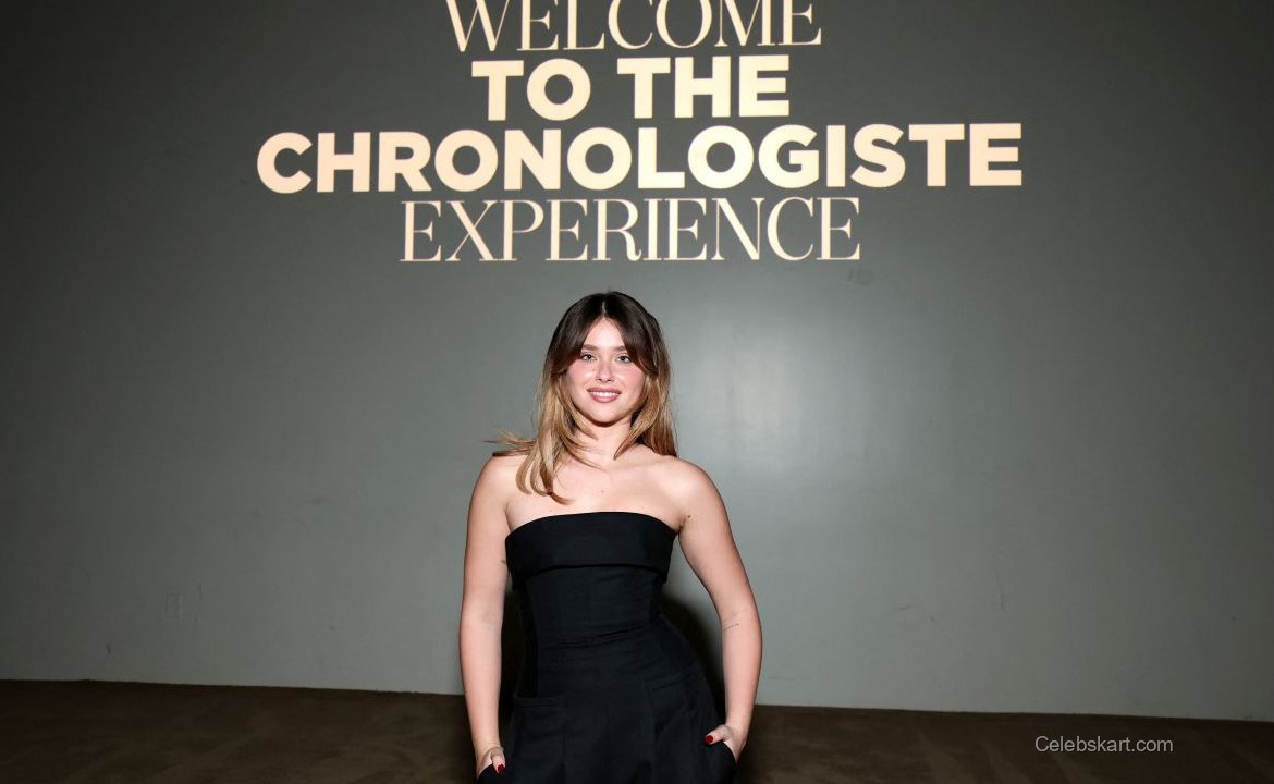 With her soft waves cascading down her shoulders, Nicole exuded confidence. Her makeup was subtle but effective, featuring a natural glow that highlighted her features. Standing confidently against the "Welcome to the Chronologiste Experience" backdrop, she radiated an engaging presence. At one moment, she smiled brightly, capturing the excitement of the event while interacting with fellow attendees. In another instance, she posed with her hands in her pockets, demonstrating a casual yet poised demeanor.