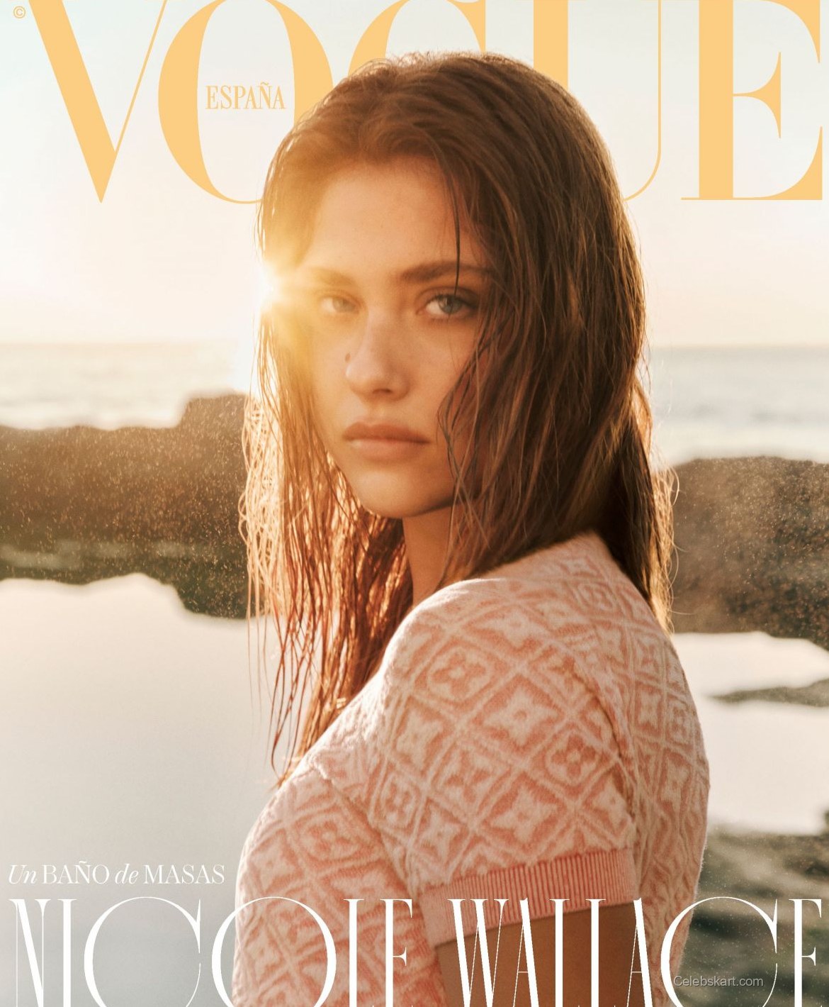 In the latest issue of Vogue Spain, Nicole Wallace graces the cover with a breathtaking photoshoot that captures both her beauty and the essence of the sea. The magazine showcases her in a soft pink outfit, perfectly complementing the natural light and warm tones of the setting. The image portrays a serene moment, highlighting her striking features and inviting gaze.