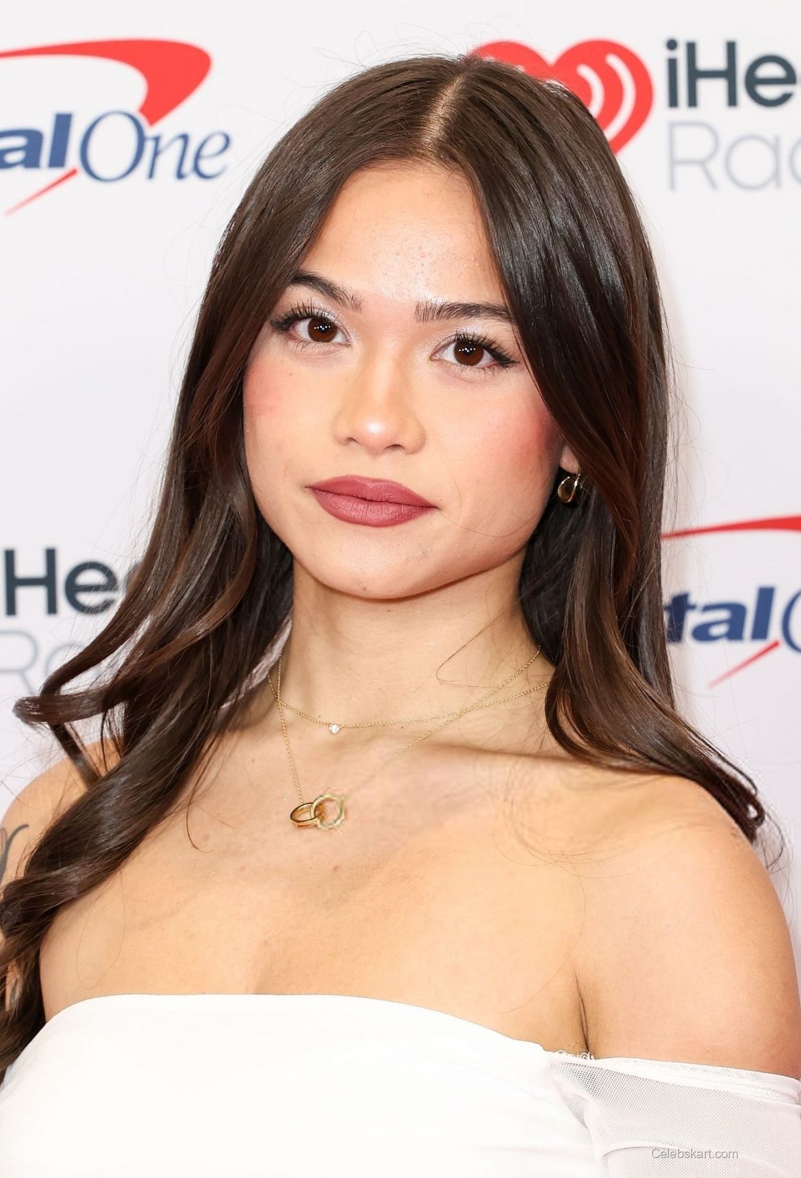 Nina posed gracefully for the cameras while exuding charm. One moment showed her adjusting her hair, revealing her long, flowing locks and beautiful makeup that included warm tones and a neutral lip. The backdrop of the event, decorated with vibrant branding from iHeartRadio and Capital One, added contrast to her outfit, making her even more visually striking. She was seen interacting with fans, confidently capturing the enthusiastic spirit of the event.