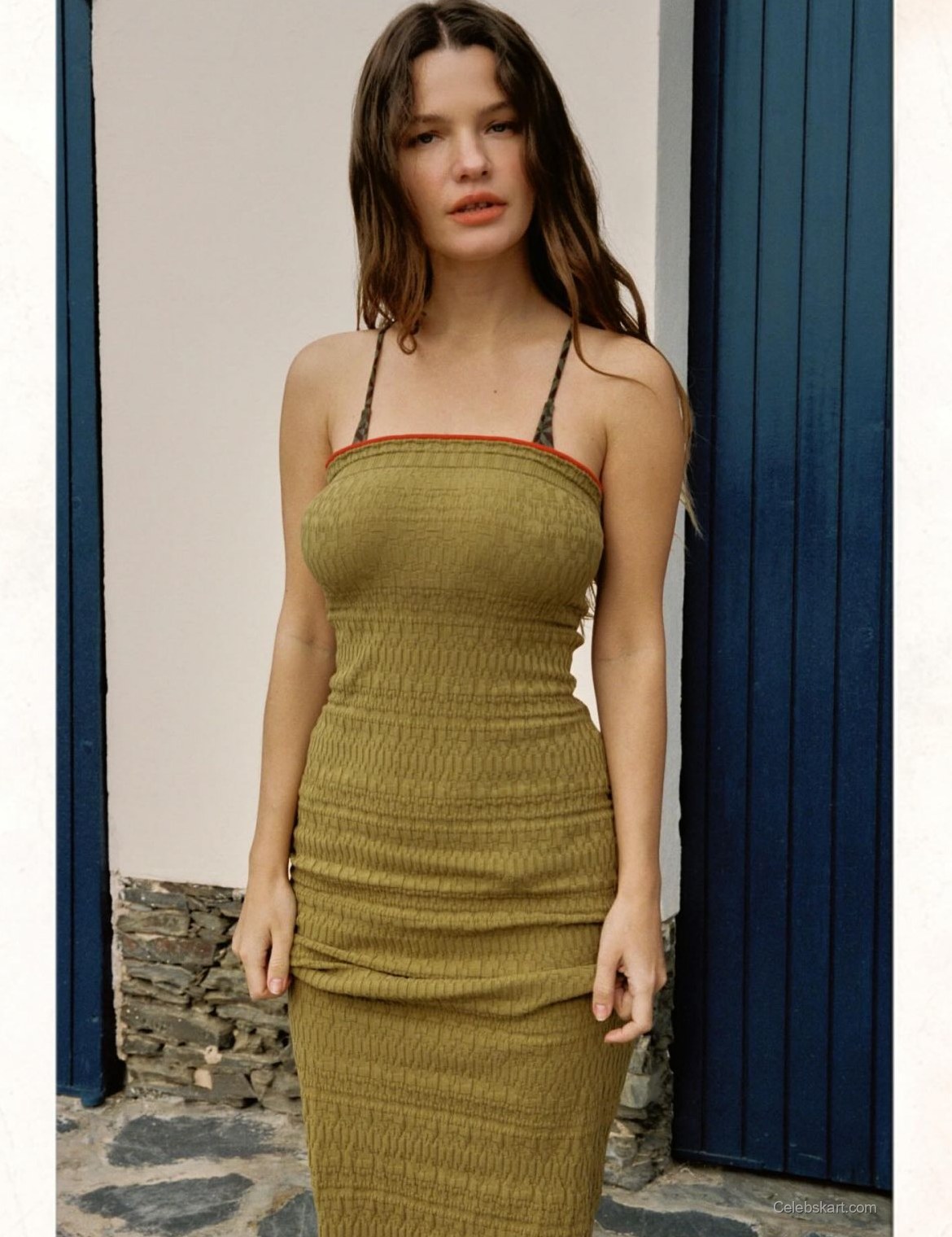 Olga wore a striking checkered bikini that emphasized her figure. The matching top featured delicate spaghetti straps, while the low-rise bikini bottom complemented her look with a playful vibe. The monochromatic black-and-white pattern gave the outfit a modern edge, and the overall simplicity was elevated by the unique design. For another moment, she was seen in a classic black bikini that exuded effortless charm. Notably, Olga also wore a soft olive green bikini that seamlessly blended with her natural beauty.