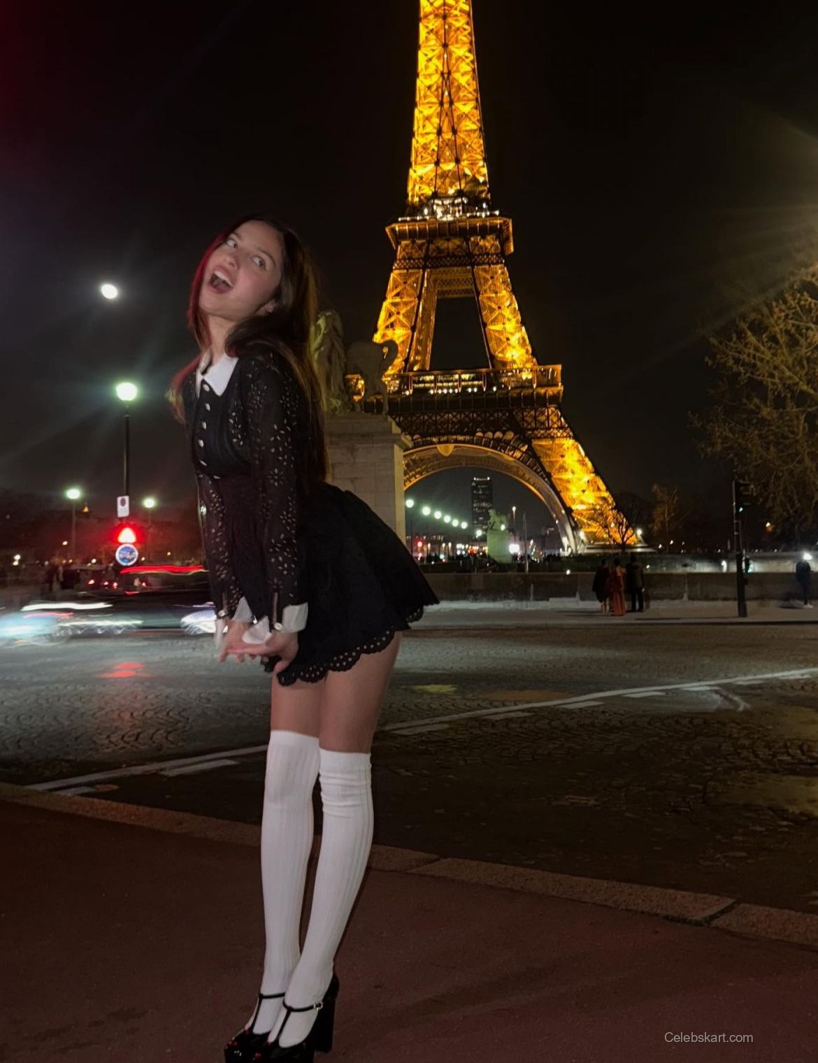 In one of the Instagram snapshots, Olivia is seen playfully adjusting her outfit while standing confidently. The way she smiles and interacts with her surroundings amplifies the energy in the photo. With the Eiffel Tower illuminated behind her, the ambiance of the Parisian night enhances her chic appearance. This backdrop creates a dreamy atmosphere, making the scene even more special.