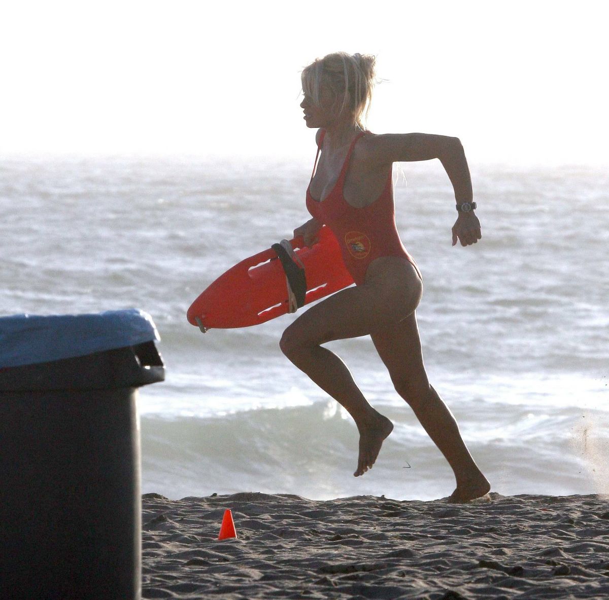 Pamela Anderson in swimsuit at Baywatch shoot, Sep 2007