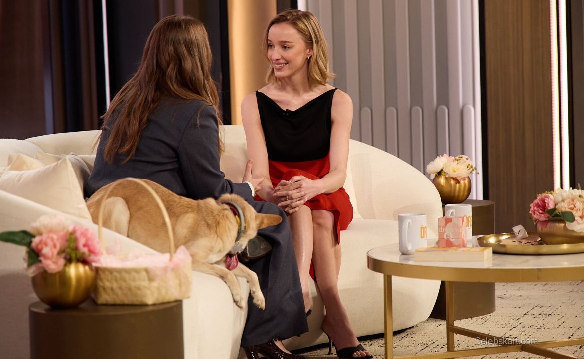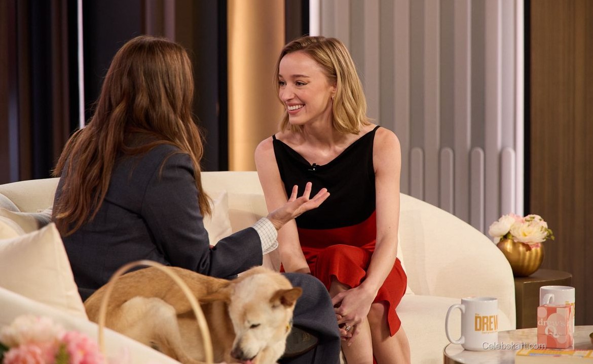 During her time on the show, Phoebe engaged in a lively conversation with Drew Barrymore, sharing stories about her latest projects and personal experiences. She was also spotted interacting with a charming dog on set, adding a delightful and relatable touch to her appearance. The cozy atmosphere of the Drew Barrymore Show provided the perfect backdrop for her stylish outfit, making the entire moment feel warm and inviting.