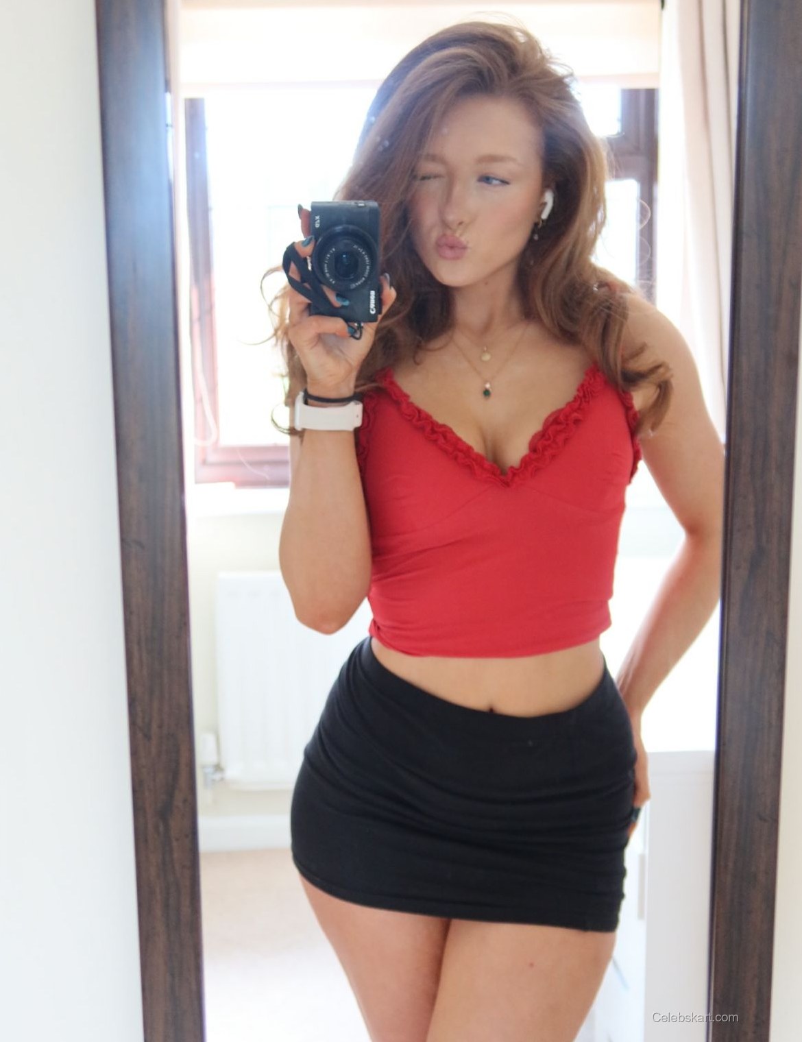 The standout feature of Phoebe's outfit is undoubtedly the red crop top, which features delicate ruffle detailing across the neckline. This vibrant piece accentuates her figure beautifully, while the fitted black skirt adds a touch of elegance. The juxtaposition of colors creates a captivating appeal, making it perfect for casual outings. You can check out more of Phoebe Ginger's style inspirations for similar bold choices.