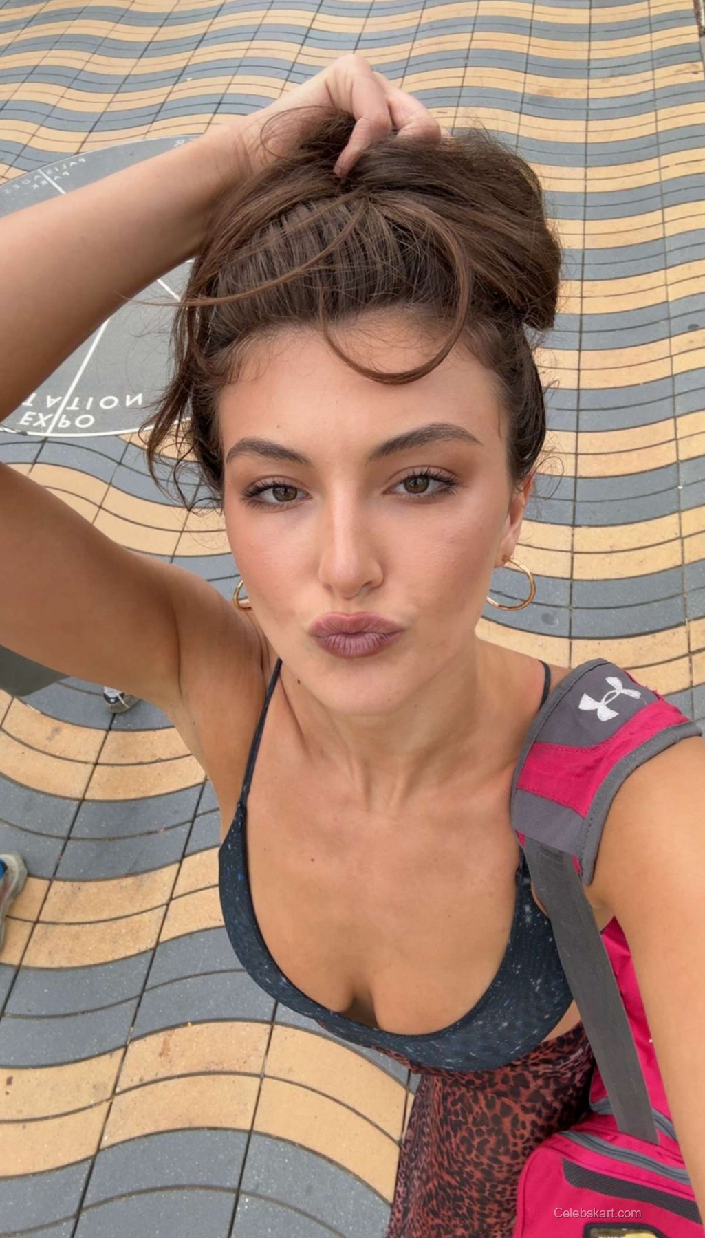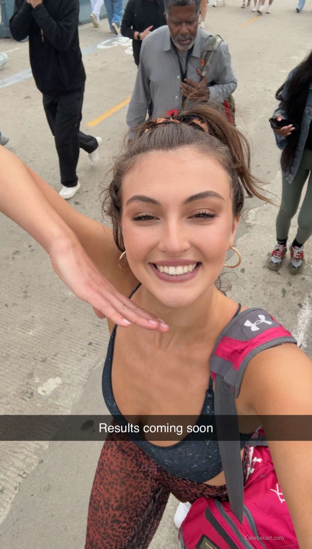 Rachel posed gracefully against a vibrant blue backdrop that accentuated her outfit, allowing her smile to effortlessly shine through. She was noticeably comfortable in front of the cameras, adjusting her hair and playfully interacting with fans. The warm lighting of the event added a glow to her skin, emphasizing her natural beauty.