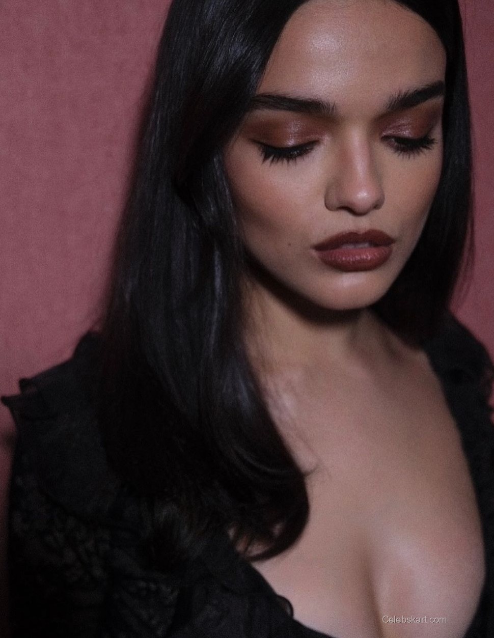 In several moments, Rachel was seen posing gracefully against various backgrounds. In one image, she appeared thoughtfully gazing down, accentuating the lace framing her neckline. The natural makeup palette enhanced her features, showcasing the perfect blend of elegance and contemporary style. This look is a true testament to her individuality.