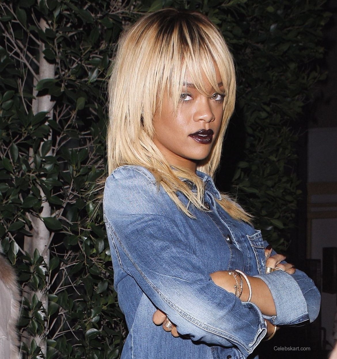Rihanna Rocks Head to Toe Denim Night Out February 2012