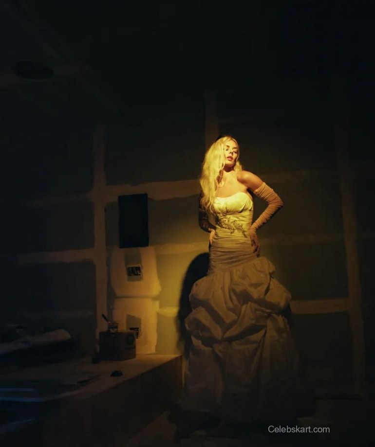 In the cozy, dimly lit setting, Samara posed with poise, holding the white flower with one hand while exuding confidence. One notable moment had her looking slightly away from the camera, the light casting a warm glow on her stunning features. The combination of her long, wavy hair and light makeup highlighted her radiant complexion, drawing viewers into her elegant presence. As she shifted her stance, the fabric of her gown caught the light beautifully, creating a sense of movement.