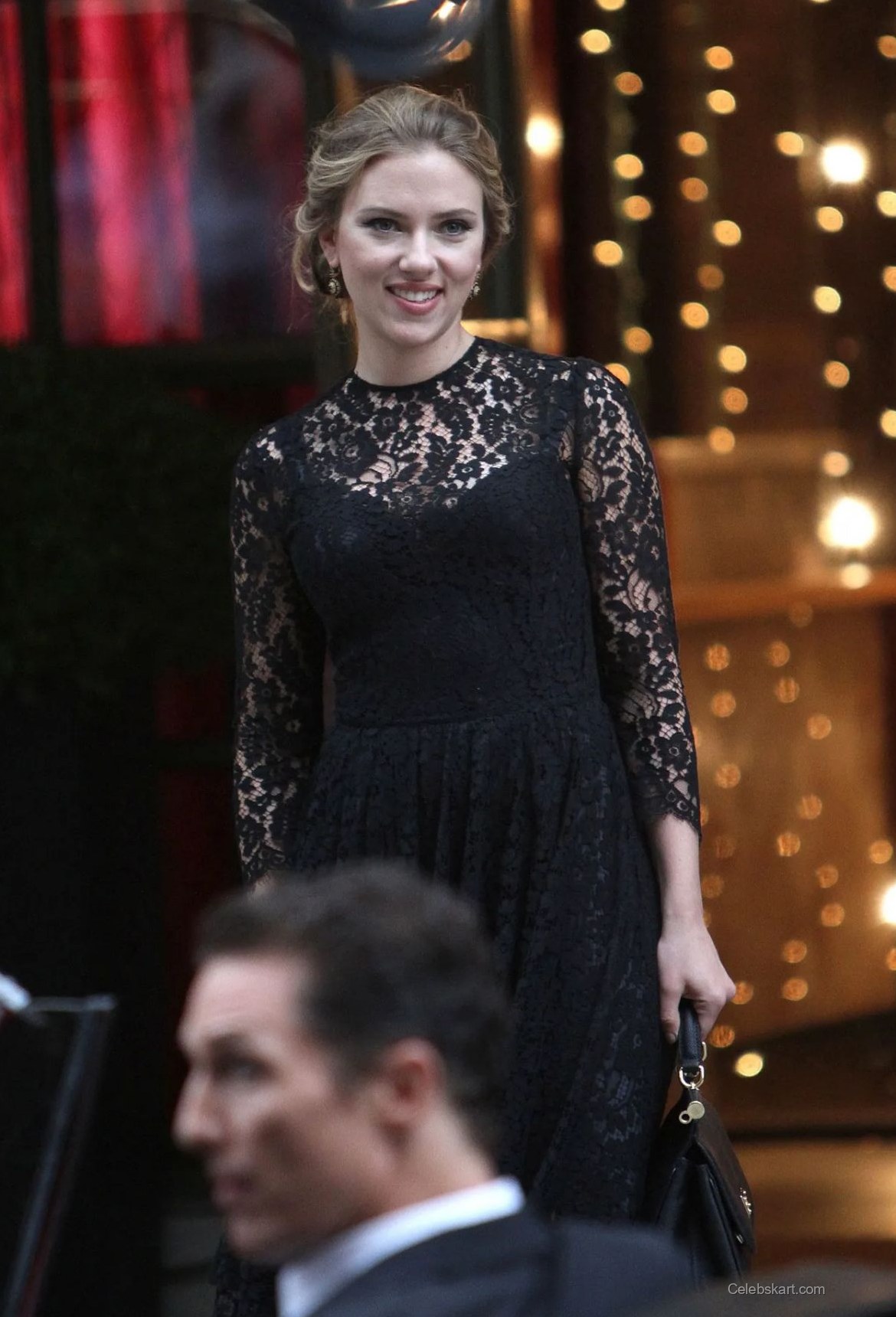 Johansson turned heads in a black lace dress that beautifully highlighted her figure. The intricate lace details provided a romantic feel, while the long sleeves added an element of sophistication. Pairing this dress with simple but elegant accessories, she effortlessly blended classic beauty with modern flair. The outfit was not just visually appealing but also perfectly suited for the campaign's glamorous vibe.