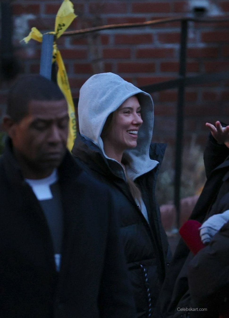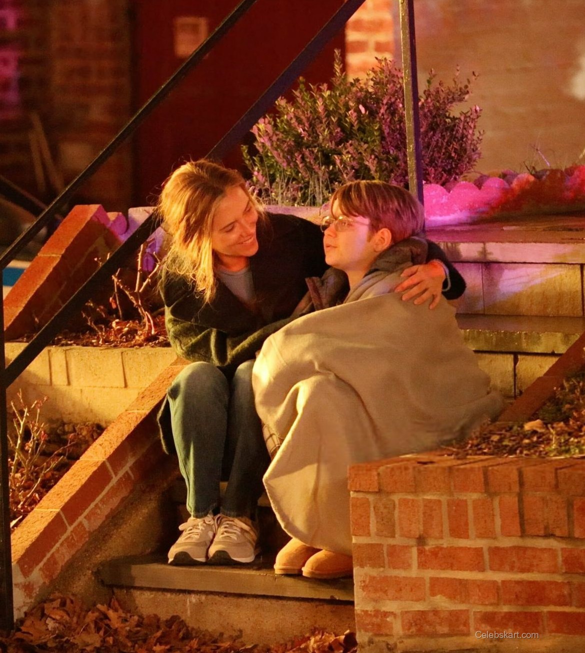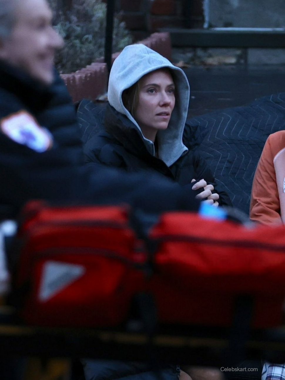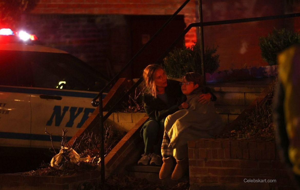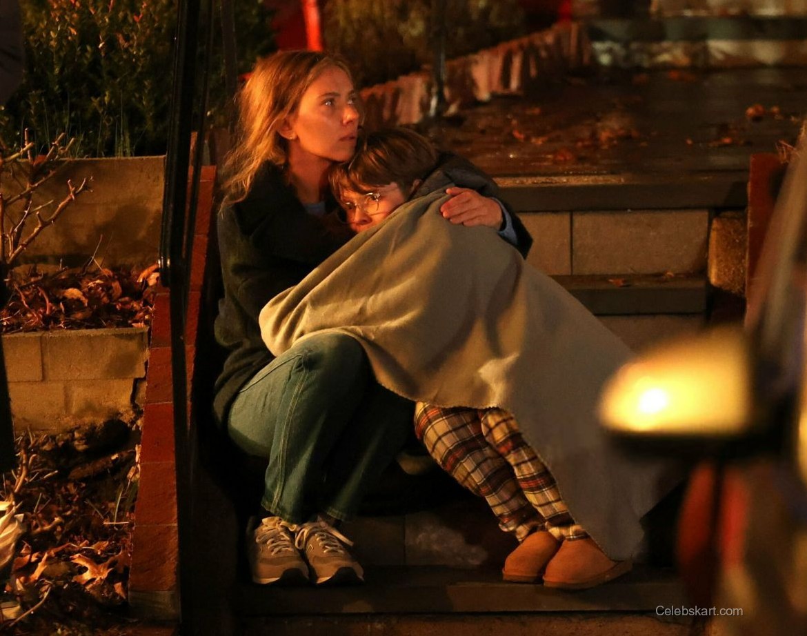 In this scene, Scarlett was clearly in character, showcasing a worried expression as she held the child close. Her tousled hair fell around her shoulders, enhancing the emotional depth of the moment. The warm lighting from nearby street lamps added a soft glow, emphasizing the bond portrayed in the scene. Viewers around the set couldn’t help but notice how well the mood was captured visually.