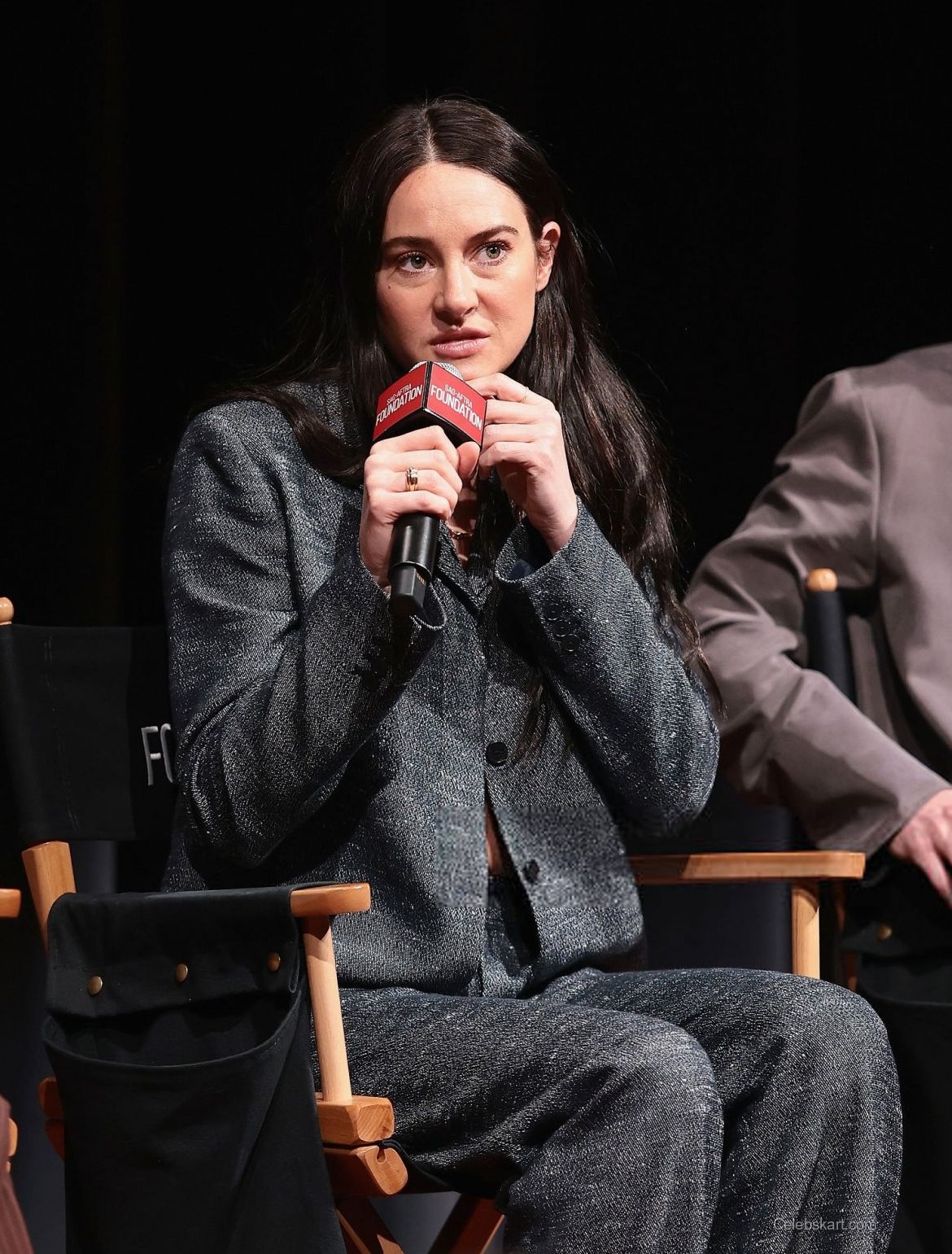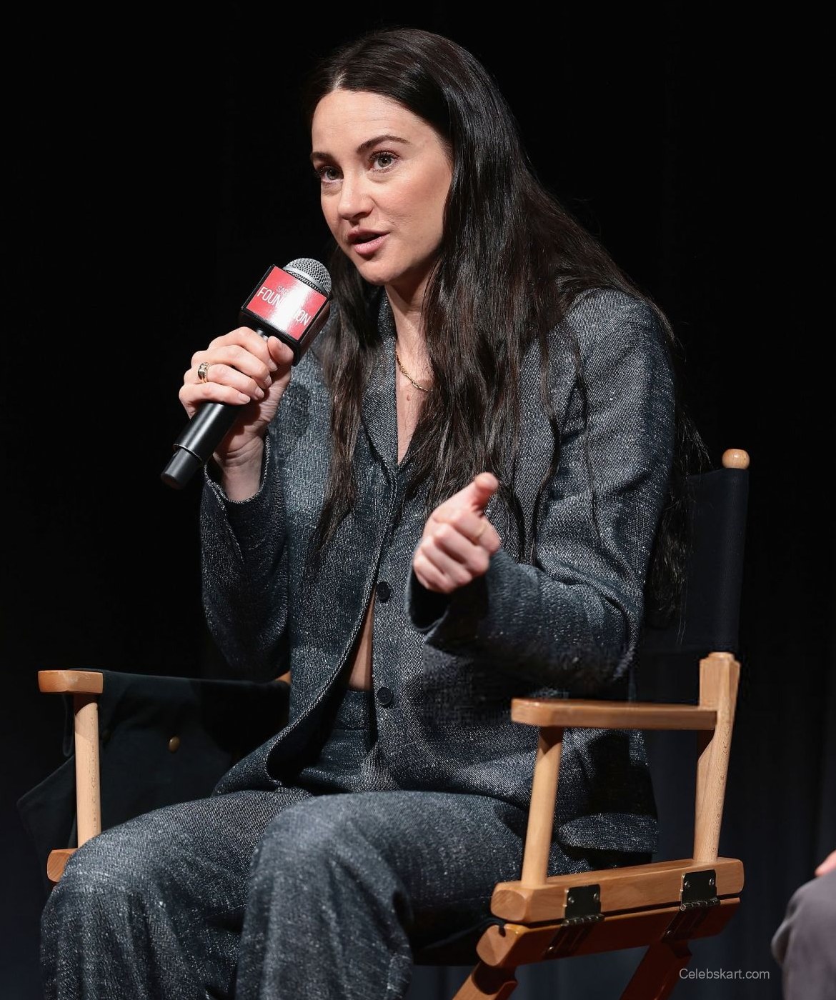 As she stepped onto the stage, her long, dark hair cascaded down her shoulders, framing her face as she smiled warmly at the audience. Shailene exuded confidence, interacting effortlessly with those around her. In one moment, she adjusted her blazer while speaking, a gesture that showed her comfort in the stylish attire. Another captivating scene saw her engaging in discussion, highlighting not only her fashion sense but also her passionate connection to the topics at hand.