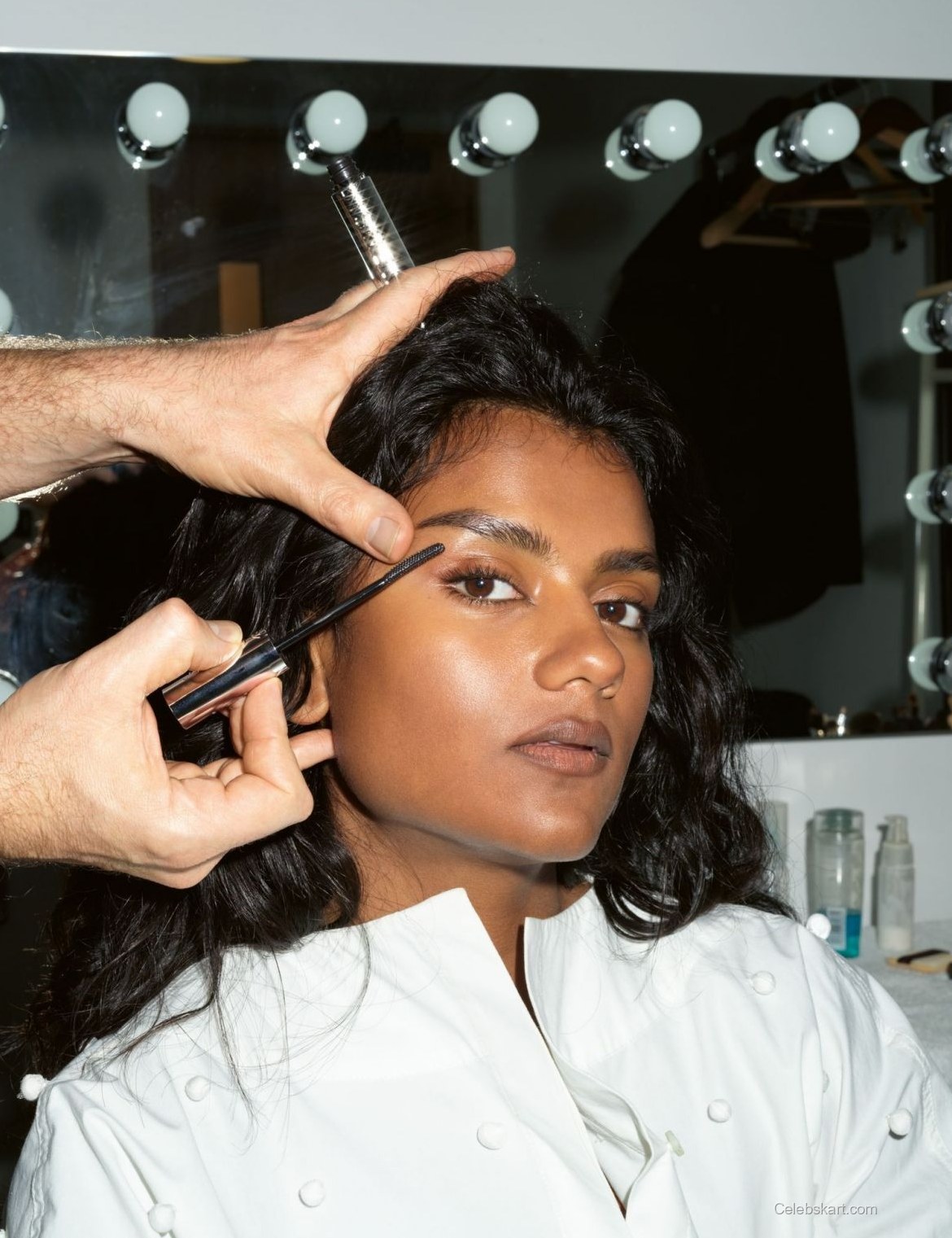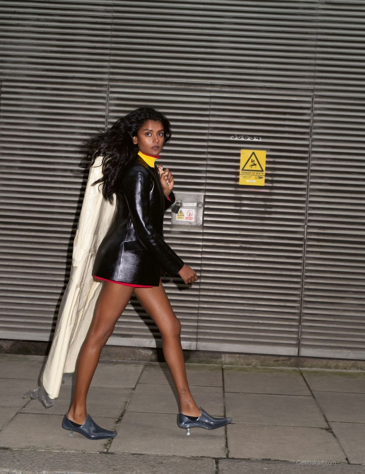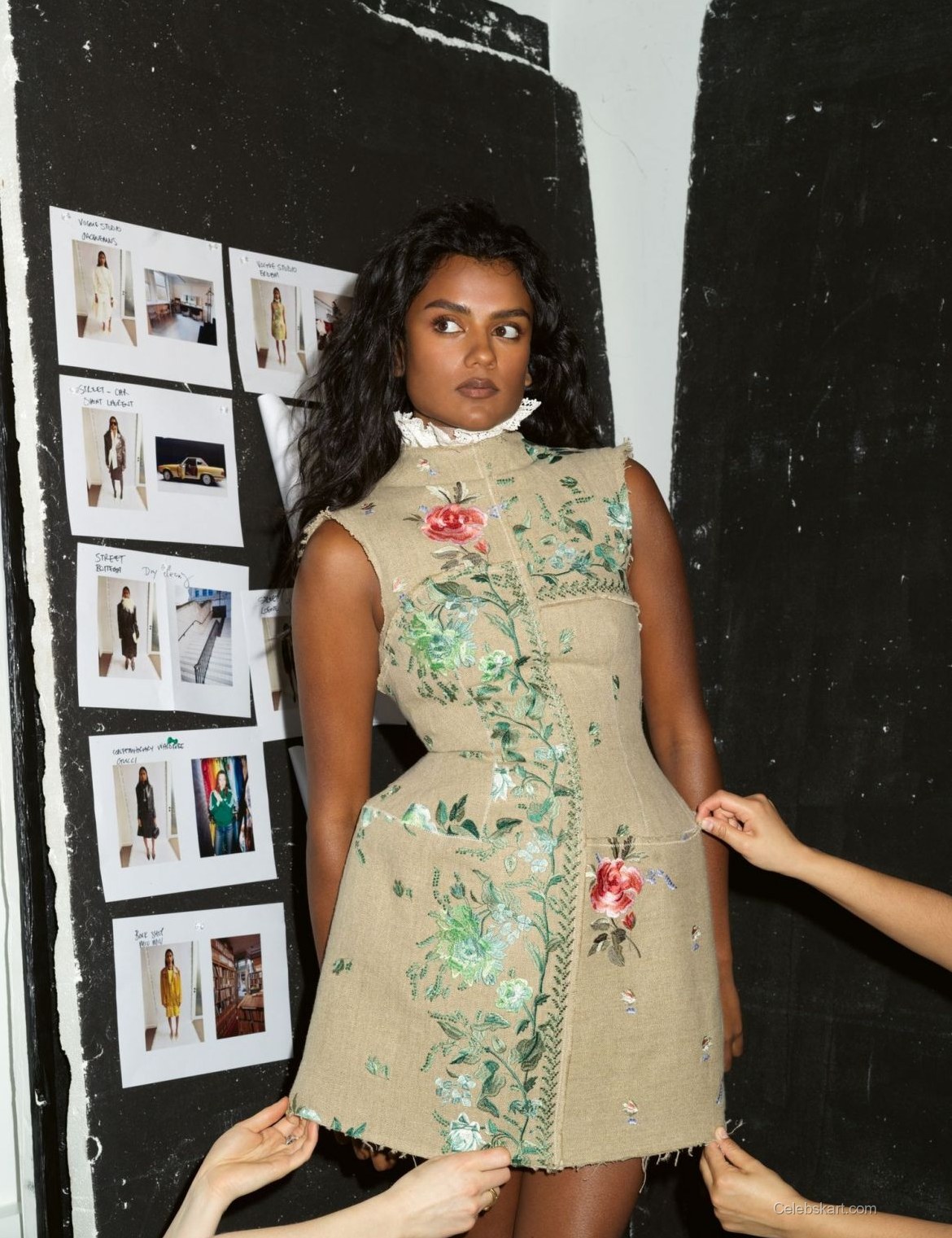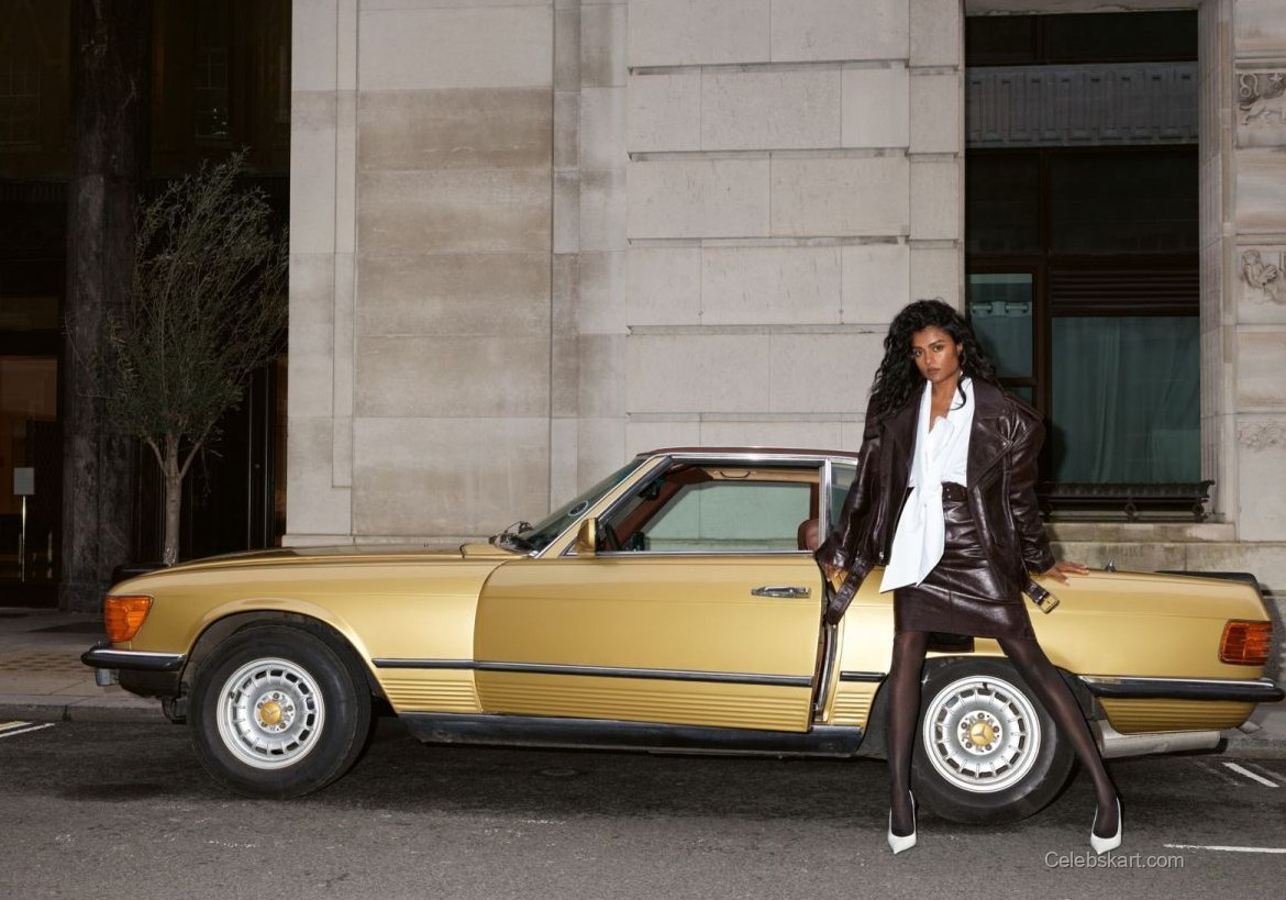 Simone Ashley's styling is expertly curated, showcasing her unique sense of fashion. Her hair is styled in soft waves that frame her face beautifully, complementing the overall aesthetic of the shoot. The makeup is kept natural, allowing her features to shine through without overwhelming the look. This approach underscores the importance of balance in fashion, showing that sometimes less is more. The combination of textures—from the smooth fabric of the coat to the structured romper—adds depth to her appearance, making it a visual treat.