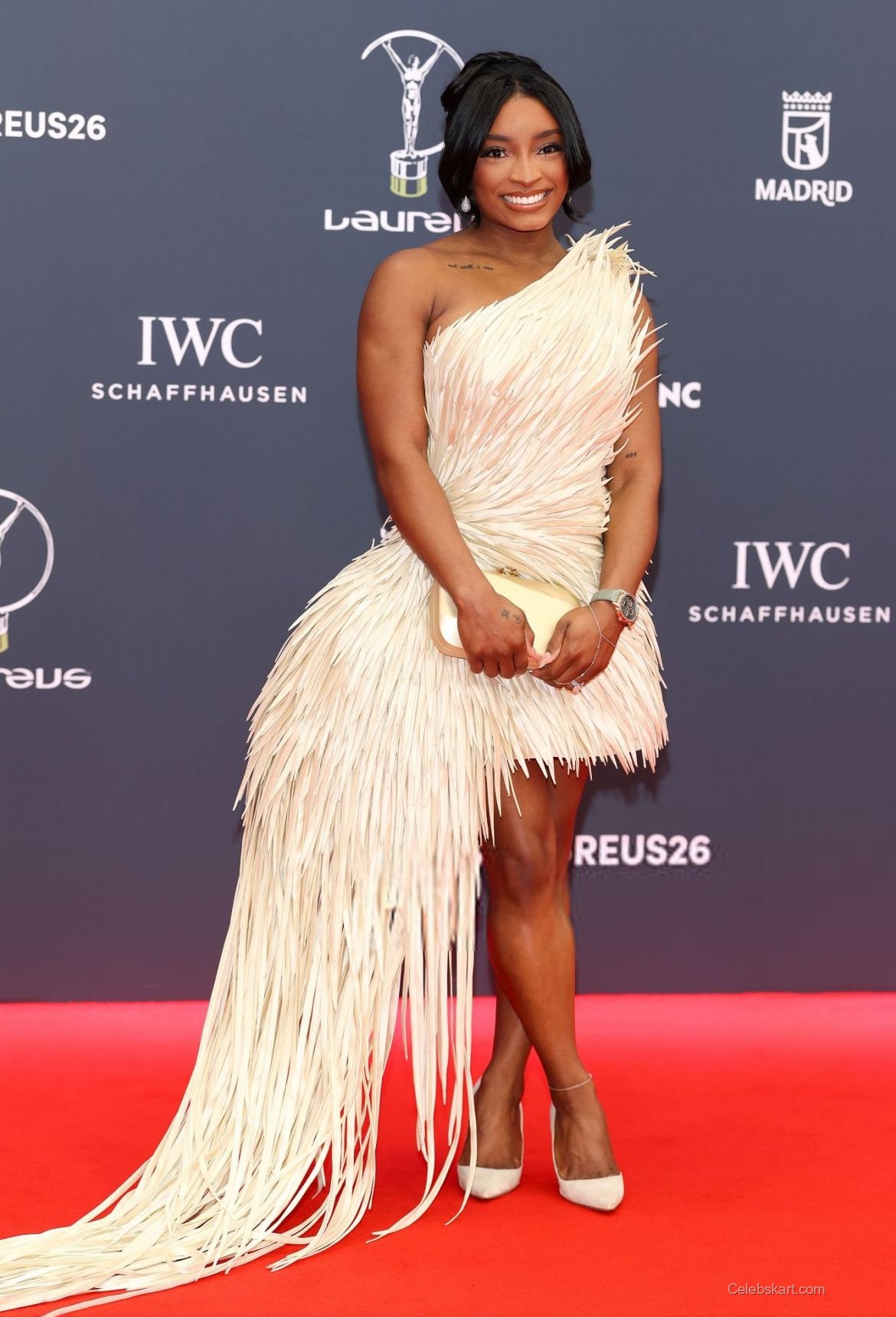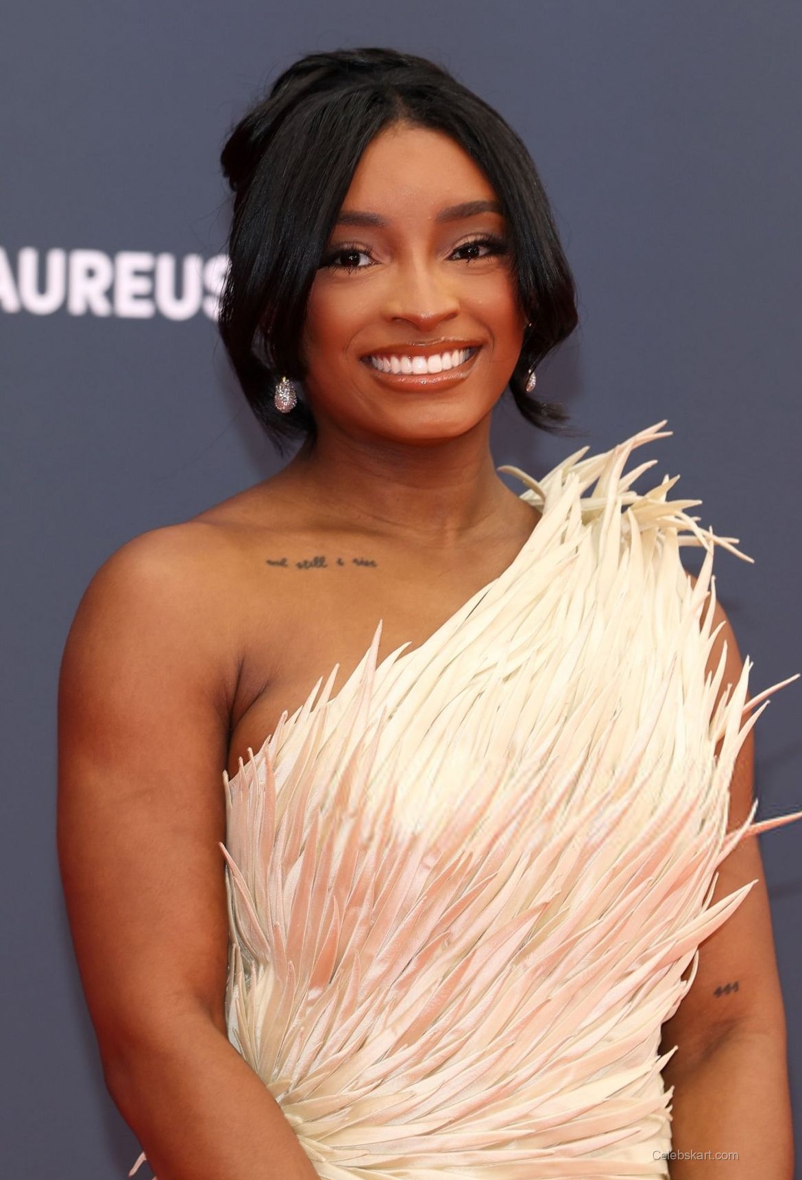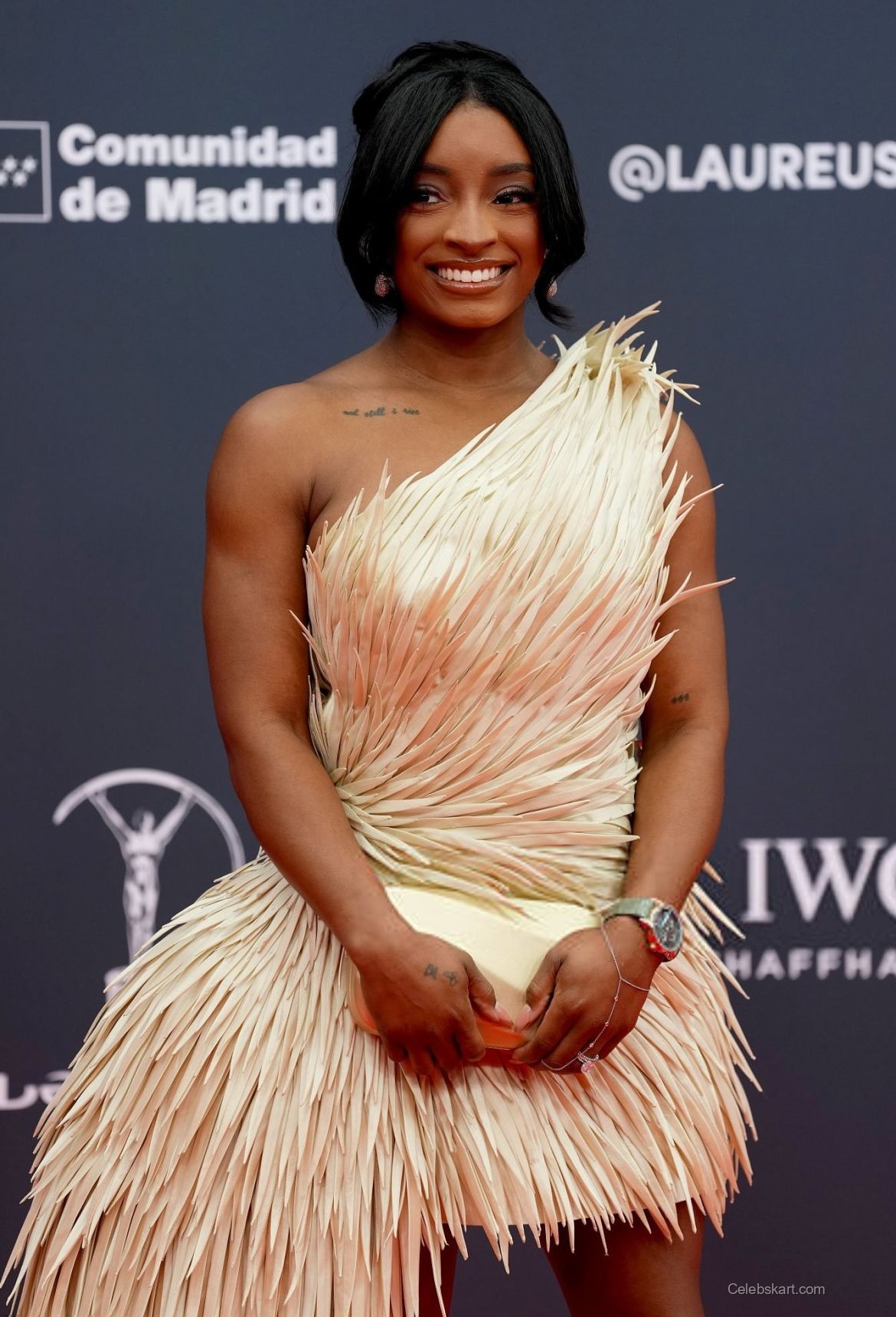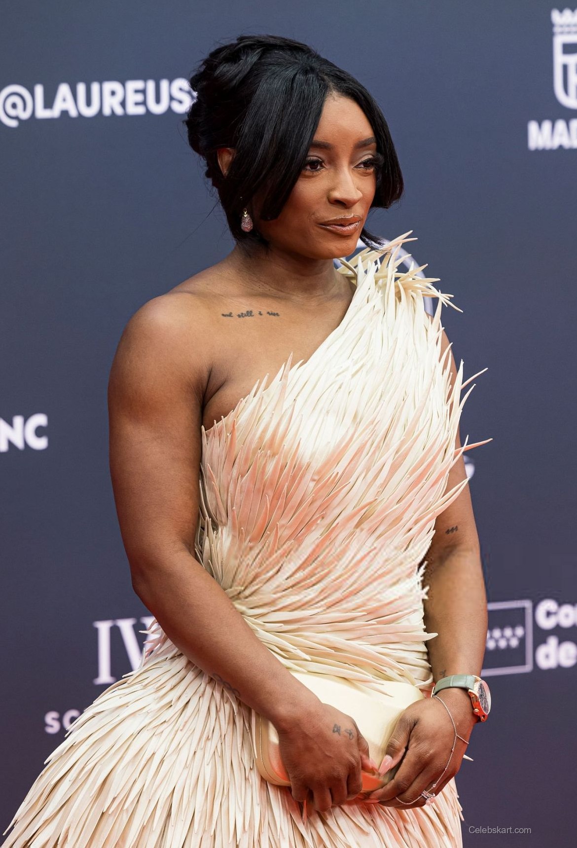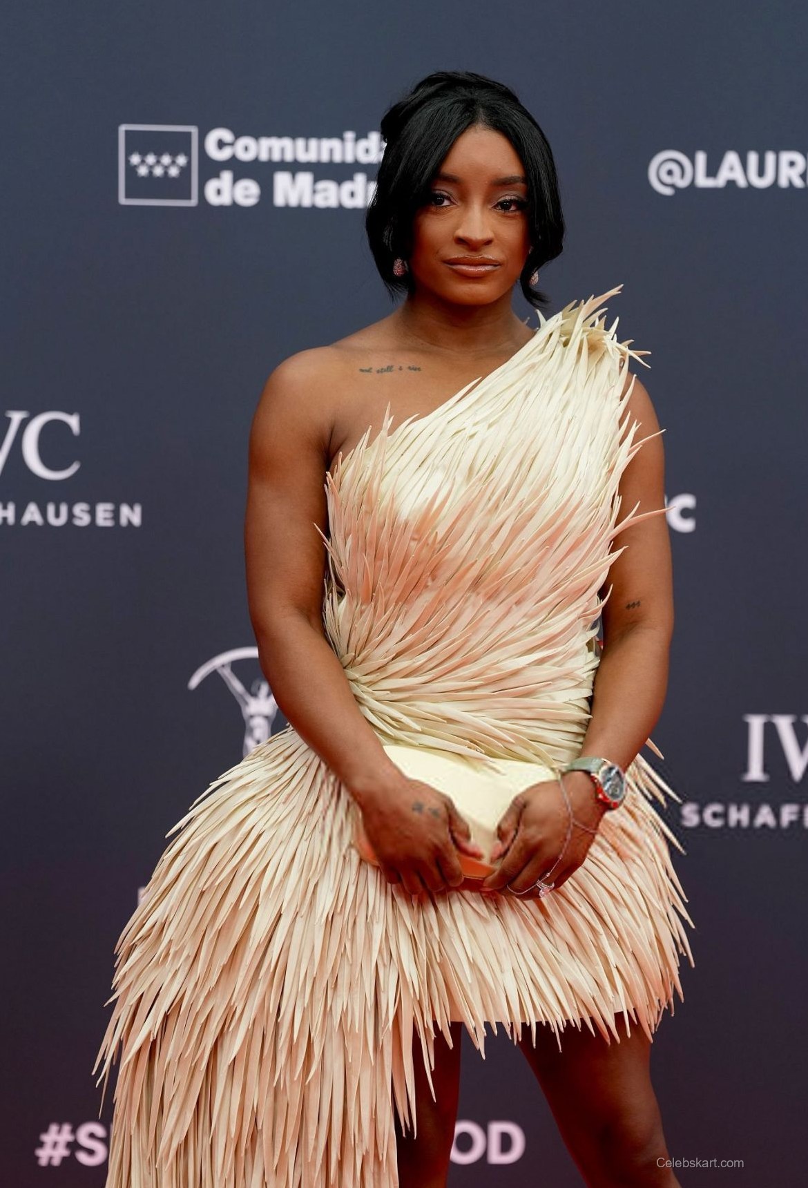 As she posed for photographs, the flowing strands of her dress danced lightly, capturing the event's celebratory spirit. Each element of her outfit was carefully curated, ensuring that Simone Biles not only made a fashion statement but also resonated with the prestigious nature of the Laureus Awards.